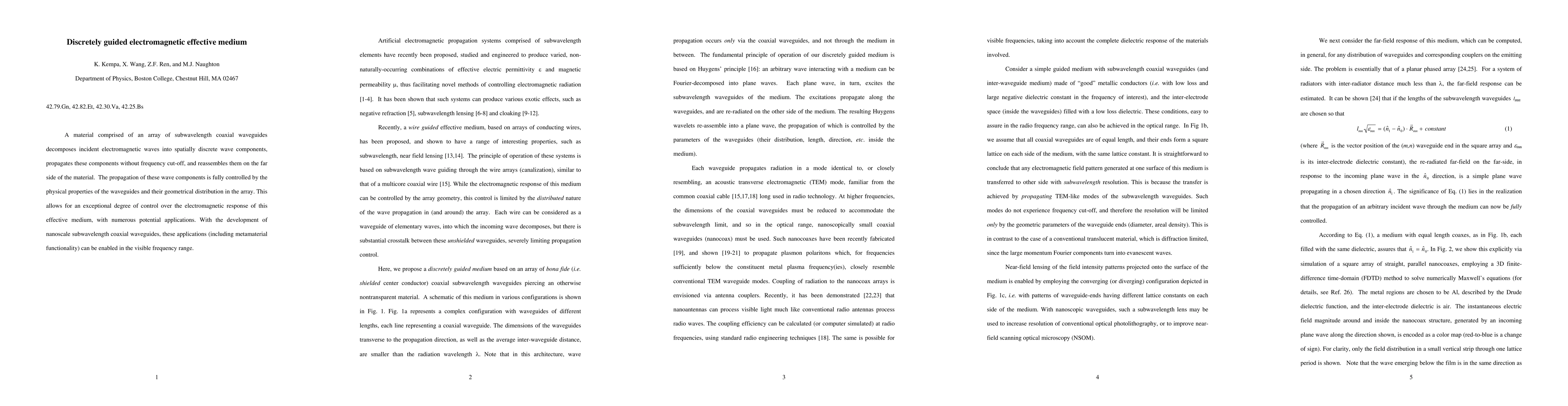 A material comprised of an array of subwavelength coaxial waveguides decomposes incident electromagnetic waves into spatially discrete wave components, propagates these components without frequency cut-off, and reassembles them on the far side of the material. The propagation of these wave components is fully controlled by the physical properties of the waveguides and their geometrical distribution in the array. This allows for an exceptional degree of control over the electromagnetic response of this effective medium, with numerous potential applications. With the development of nanoscale subwavelength coaxial waveguides, these applications (including metamaterial functionality) can be enabled in the visible frequency range.