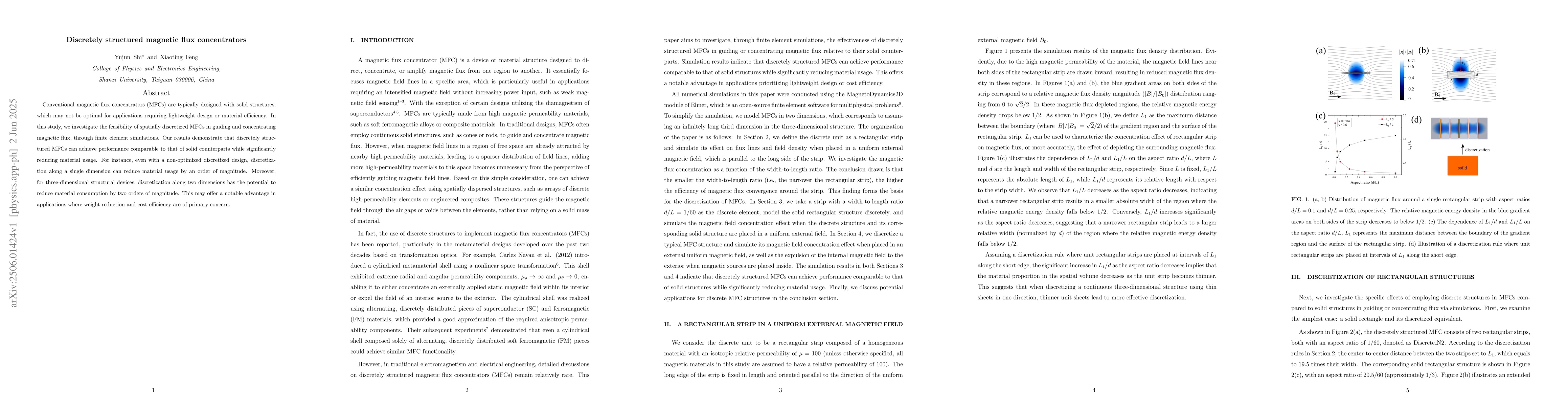 Finite element simulations were used to investigate the feasibility of spatially discretized magnetic flux concentrators.