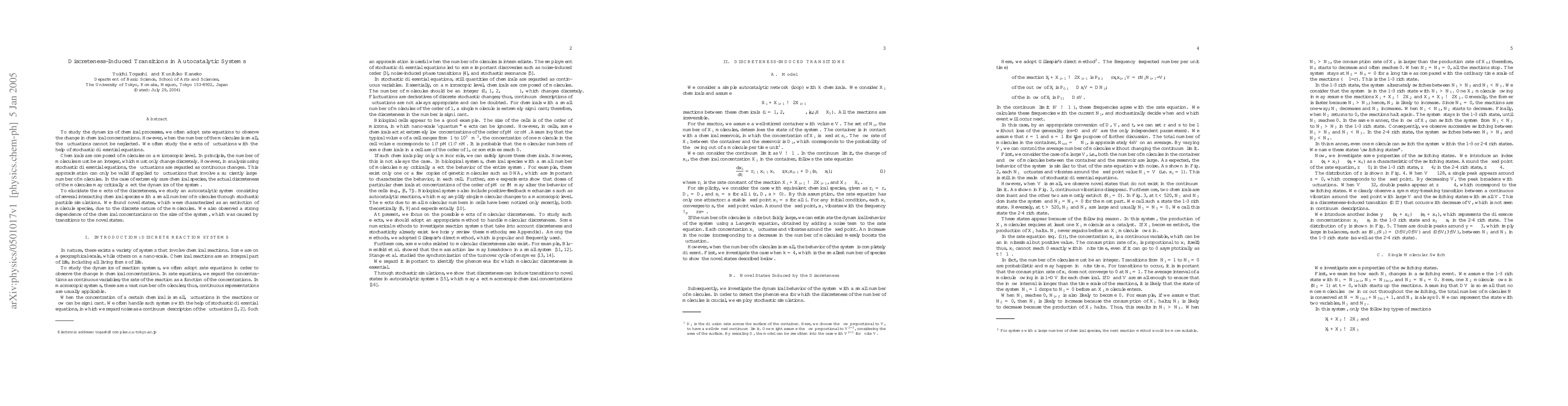 This research investigates autocatalytic chemical systems with few molecules, highlighting how their discrete nature impacts dynamics. Through stochastic particle simulations, novel extinction states and strong concentration dependence on system size were discovered due to discreteness-induced transitions.