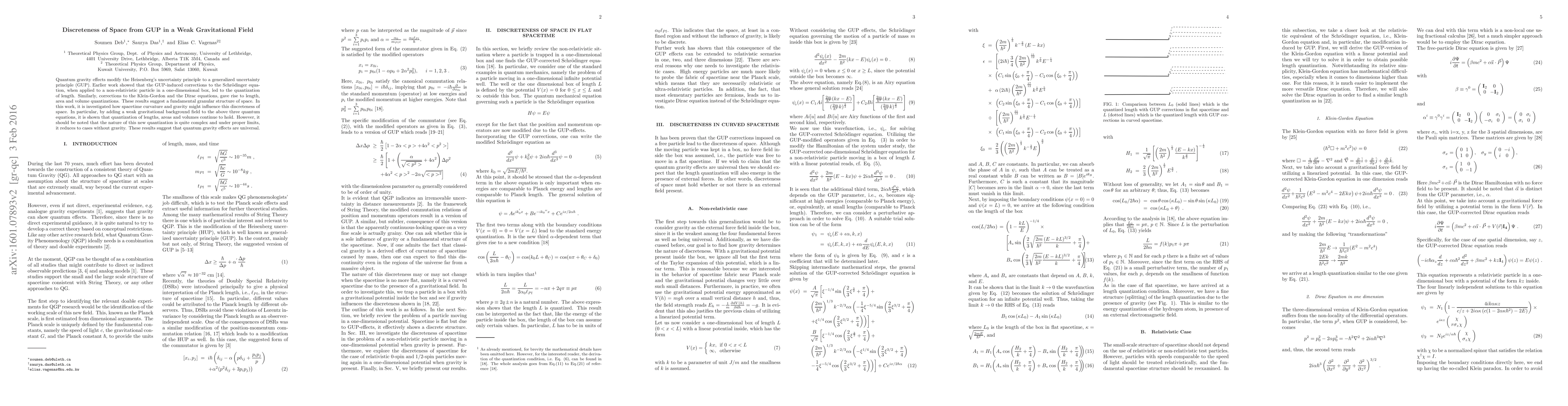 This paper investigates how weak gravitational fields influence the discreteness of space predicted by the generalized uncertainty principle (GUP). It finds that GUP-induced quantization of lengths, areas, and volumes persists even with gravitational effects, suggesting a universal fundamental granular structure in space.