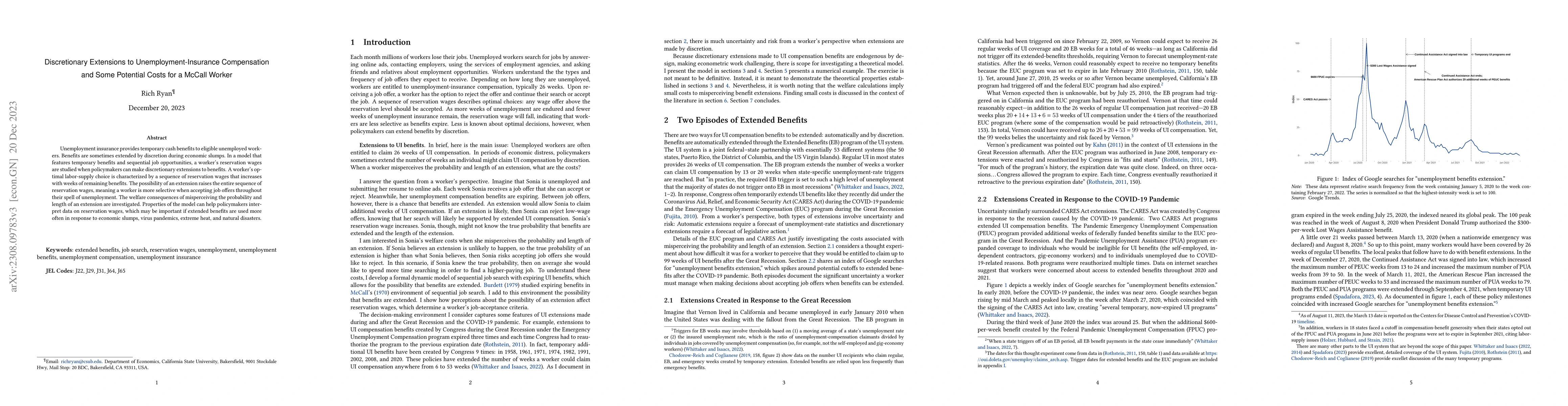This paper examines how discretionary extensions to unemployment-insurance benefits influence a worker's reservation wages during unemployment. It finds that the possibility of benefit extensions makes workers more selective in accepting job offers, potentially complicating policy decisions.