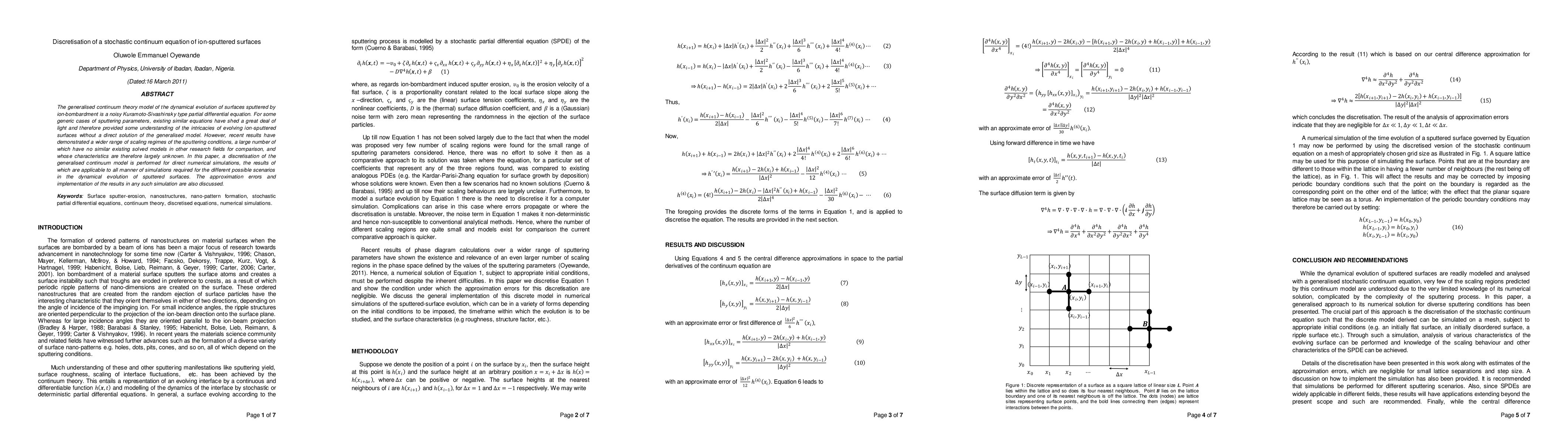 This paper presents a discretisation method for a stochastic continuum equation modelling the evolution of ion-sputtered surfaces, enabling direct numerical simulations across various sputtering conditions. The study also discusses approximation errors and implementation strategies for these simulations.