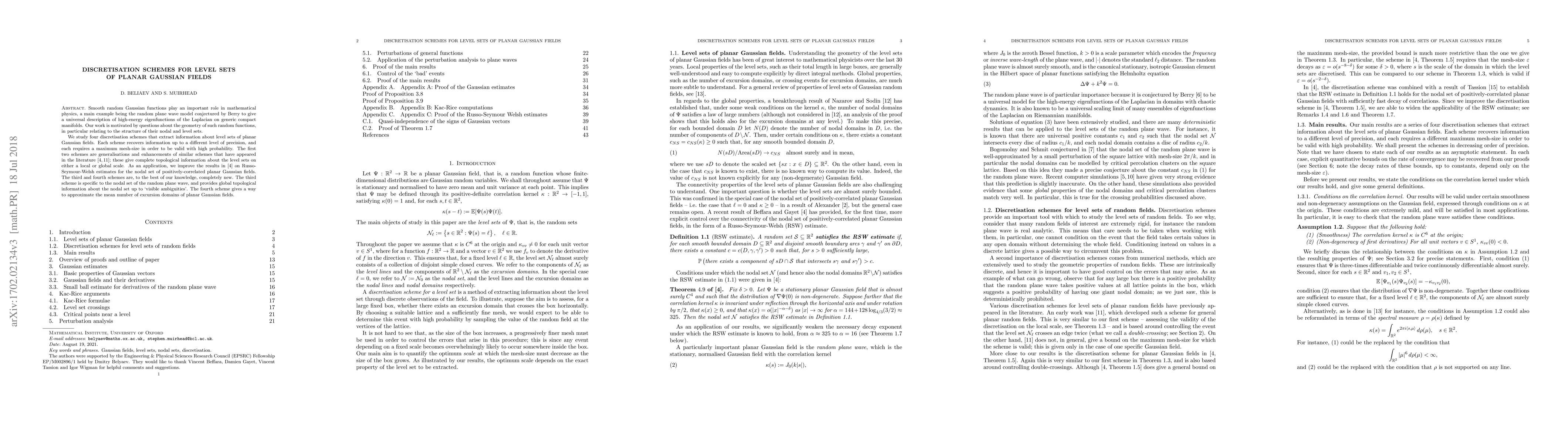 This paper investigates four discretisation schemes for extracting level set information from planar Gaussian fields, enhancing existing methods and introducing two novel approaches. The schemes provide topological insights at varying precision levels, with applications including improved Russo-Seymour-Welsh estimates and approximations of mean excursion domains.