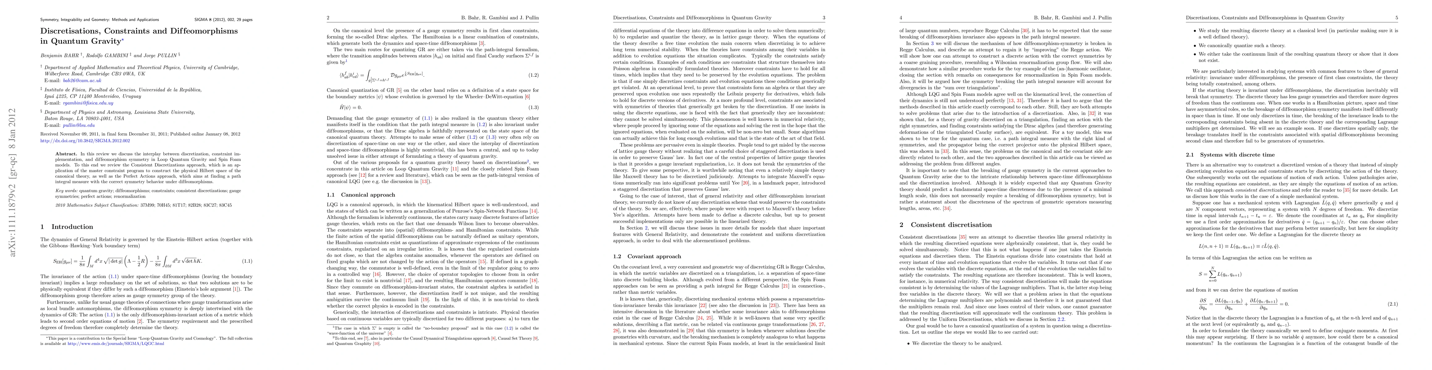 This paper reviews the Consistent Discretizations approach in Loop Quantum Gravity and Spin Foam models, focusing on constructing the physical Hilbert space through constraint implementation. It also discusses the Perfect Actions approach to achieve the correct symmetry behavior under diffeomorphisms.