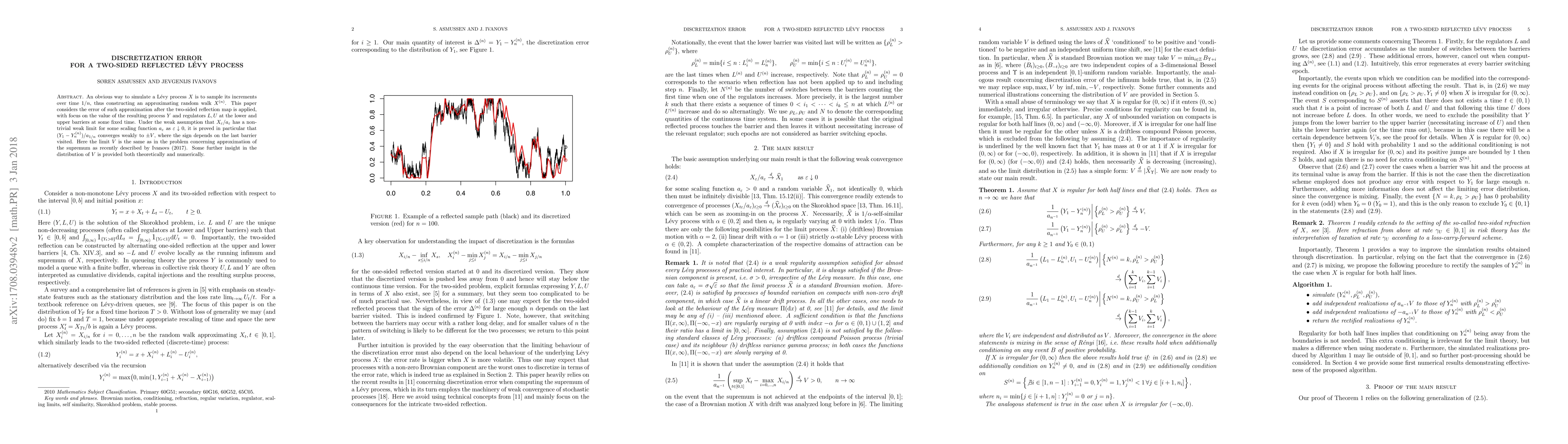 An obvious way to simulate a L\'evy process $X$ is to sample its increments over time $1/n$, thus constructing an approximating random walk $X^{(n)}$. This paper considers the error of such approximation after the two-sided reflection map is applied, with focus on the value of the resultant process $Y$ and regulators $L,U$ at the lower and upper barriers at some fixed time. Under the weak assumption that $X_\varepsilon/a_\varepsilon$ has a non-trivial weak limit for some scaling function $a_\varepsilon$ as $\varepsilon\downarrow 0$, it is proved in particular that $(Y_1-Y^{(n)}_n)/a_{1/n}$ converges weakly to $\pm V$, where the sign depends on the last barrier visited. Here the limit $V$ is the same as in the problem concerning approximation of the supremum as recently described by Ivanovs (2017). Some further insight in the distribution of $V$ is provided both theoretically and numerically.