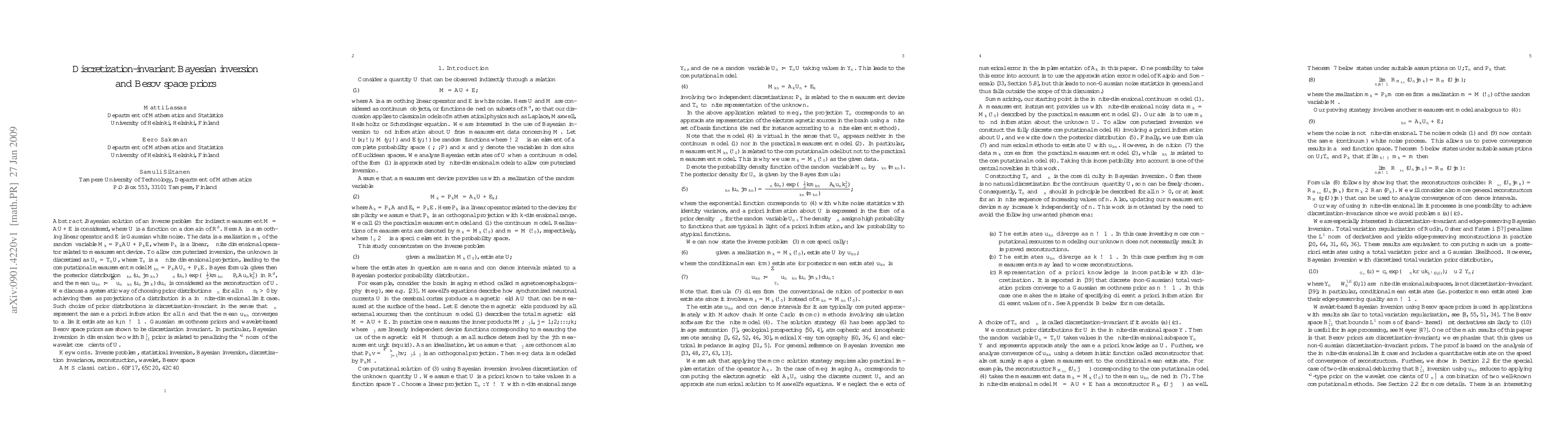 This paper introduces a method for Bayesian inversion of indirect measurements using discretization-invariant priors, allowing for efficient and accurate reconstruction of the underlying function, regardless of the measurement device's resolution.