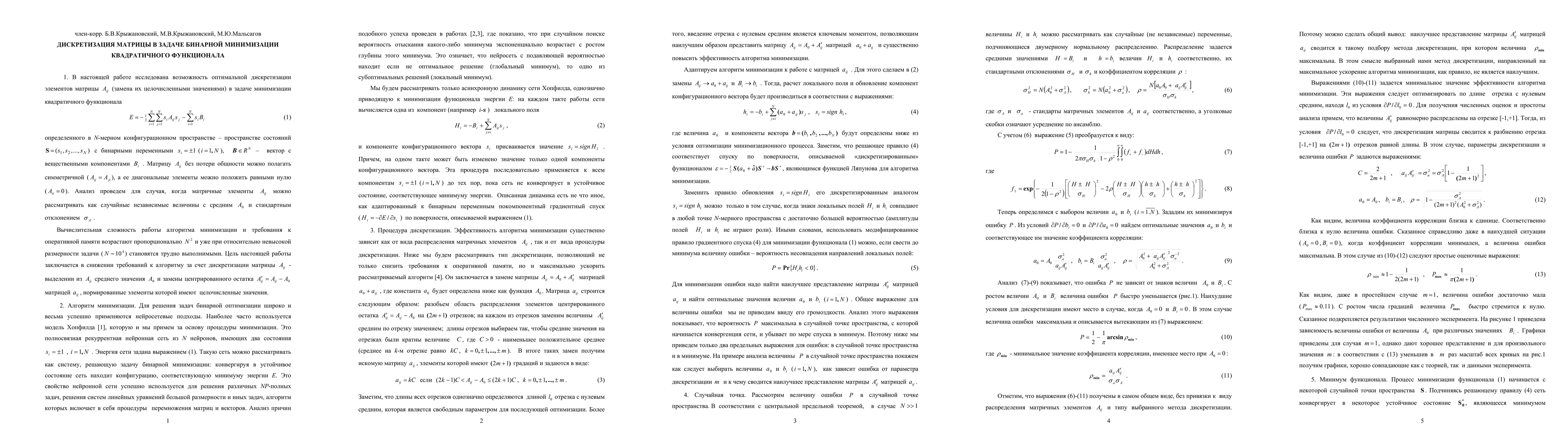 A research paper explores a method to discretize matrix elements in quadratic functional minimization problems without reducing efficiency. This approach reduces computational complexity by 16 times and increases algorithm speed.