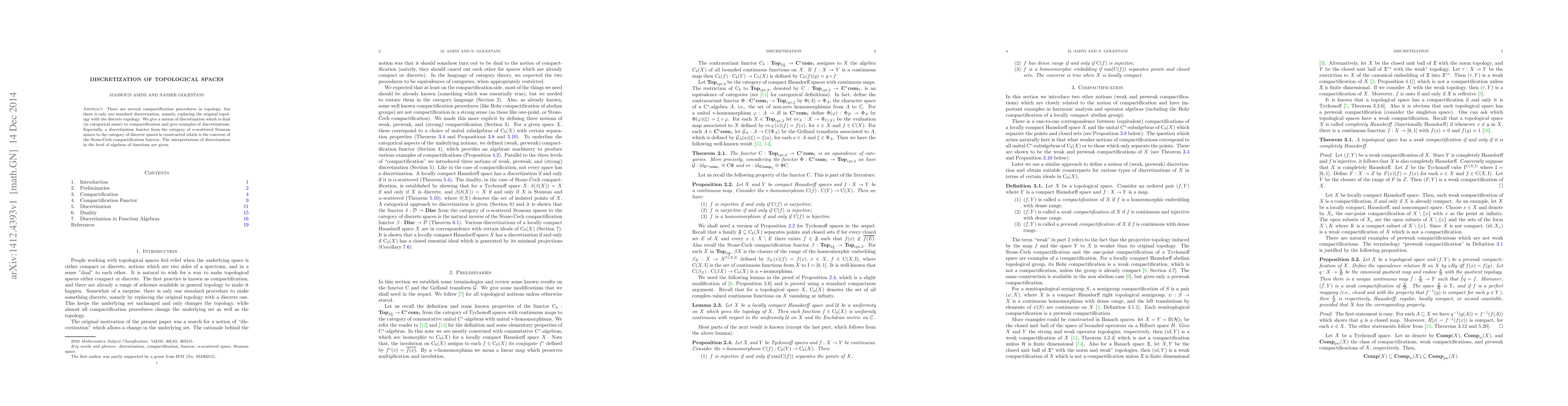 This paper introduces a categorical notion of discretization dual to compactification, constructing a discretization functor from $\alpha$-scattered Stonean spaces to discrete spaces, and explores its implications for algebras of functions.