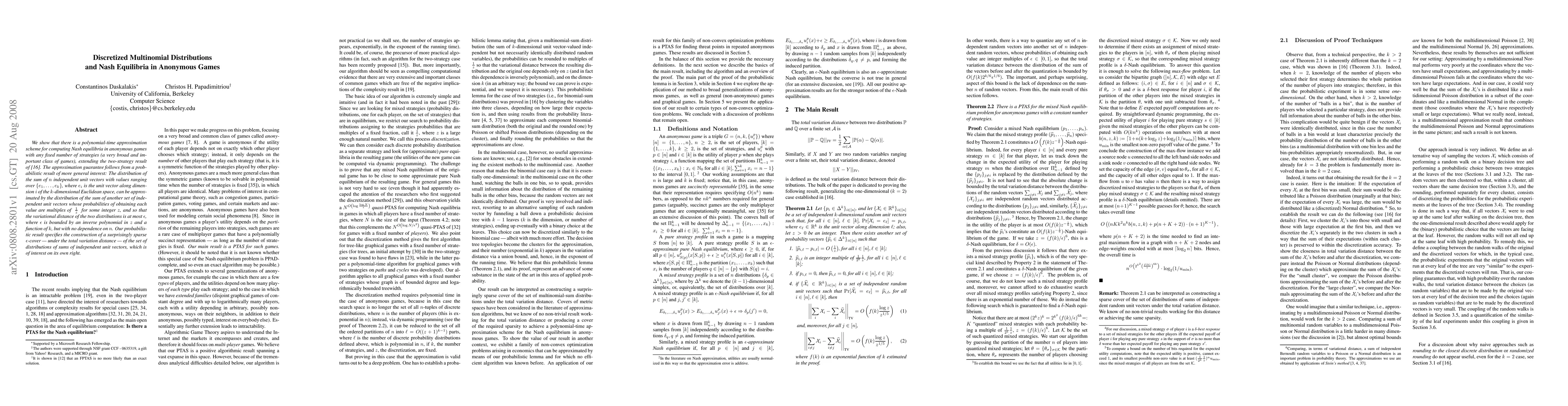 Researchers discovered a polynomial-time approximation scheme for finding Nash equilibria in anonymous games with multiple strategies, extending previous work on two-strategy cases.