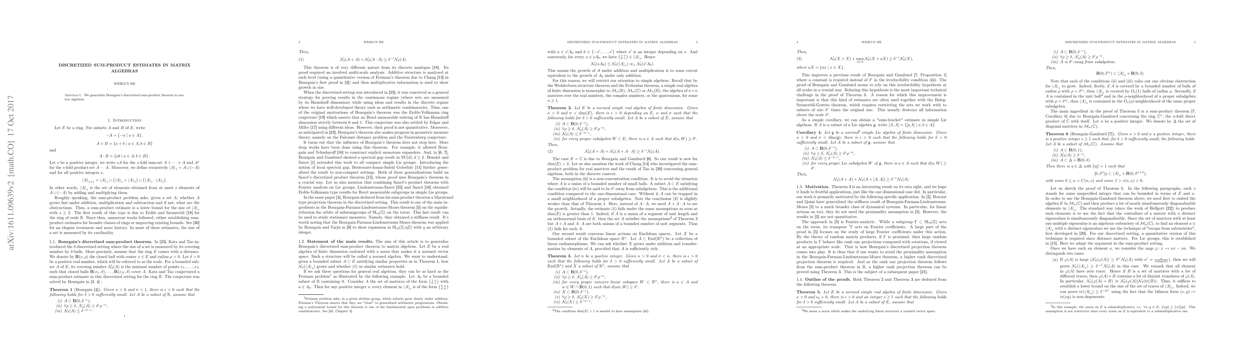 The paper introduces a framework for discretized sum-product estimates in matrix algebras, providing a method to escape subvarieties quantitatively, which is a significant advancement in algebraic geometry and representation theory.