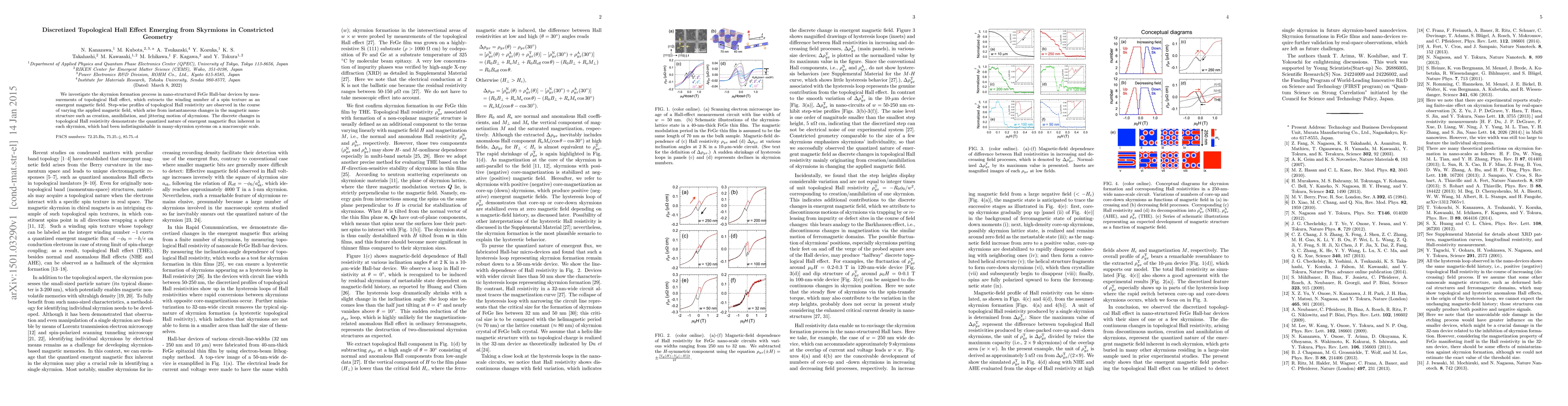 This study investigates skyrmion dynamics in nano-structured FeGe Hall-bar devices, revealing step-wise changes in topological Hall resistivity linked to skyrmion formation, annihilation, and motion. The discrete changes highlight the quantized nature of emergent magnetic flux per skyrmion, distinguishing individual skyrmions in constricted geometries.