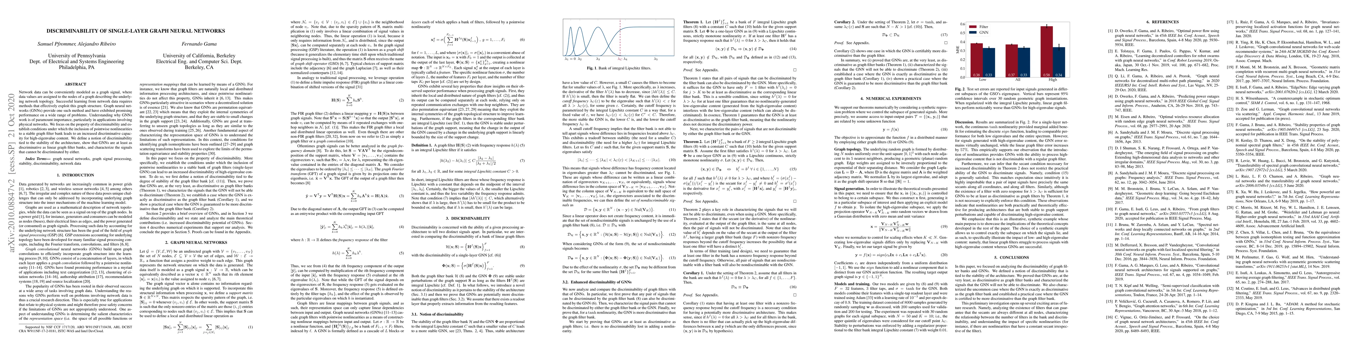 This paper investigates the discriminability of single-layer graph neural networks (GNNs) by analyzing how nonlinearities enhance their ability to distinguish high-eigenvalue graph signals compared to linear graph filter banks. The study establishes conditions under which GNNs outperform linear methods in discriminative capacity.