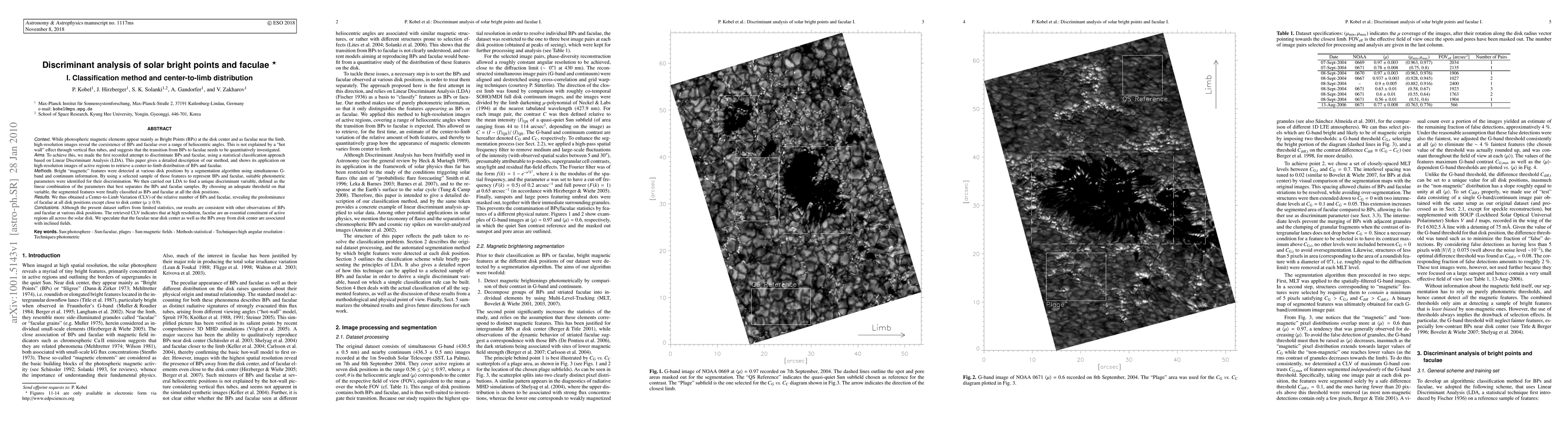 This paper uses Linear Discriminant Analysis (LDA) to classify solar bright points (BPs) and faculae, revealing their center-to-limb distribution. The study finds that faculae are prevalent across the solar disk, suggesting inclined magnetic fields are associated with both BPs and faculae.