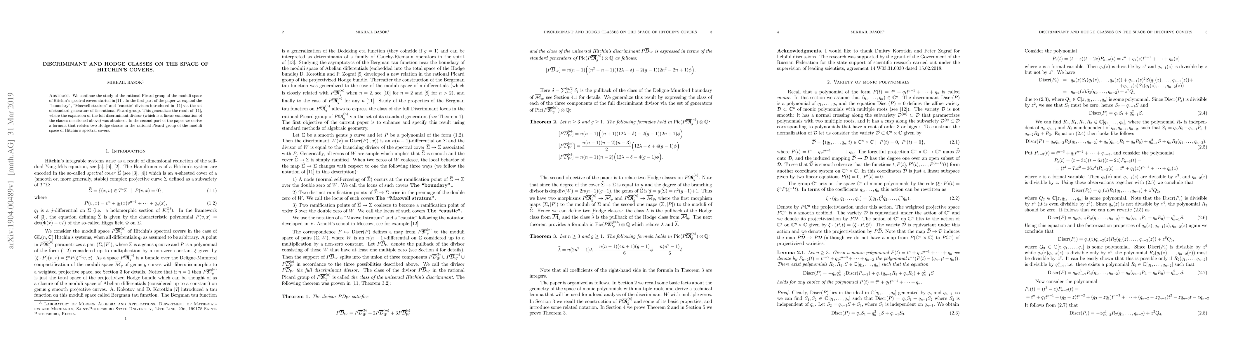 This paper extends the rational Picard group study of Hitchin's moduli space by expanding the boundary, Maxwell stratum, and caustic divisors using standard generators. It also derives a formula linking two Hodge classes within this group.