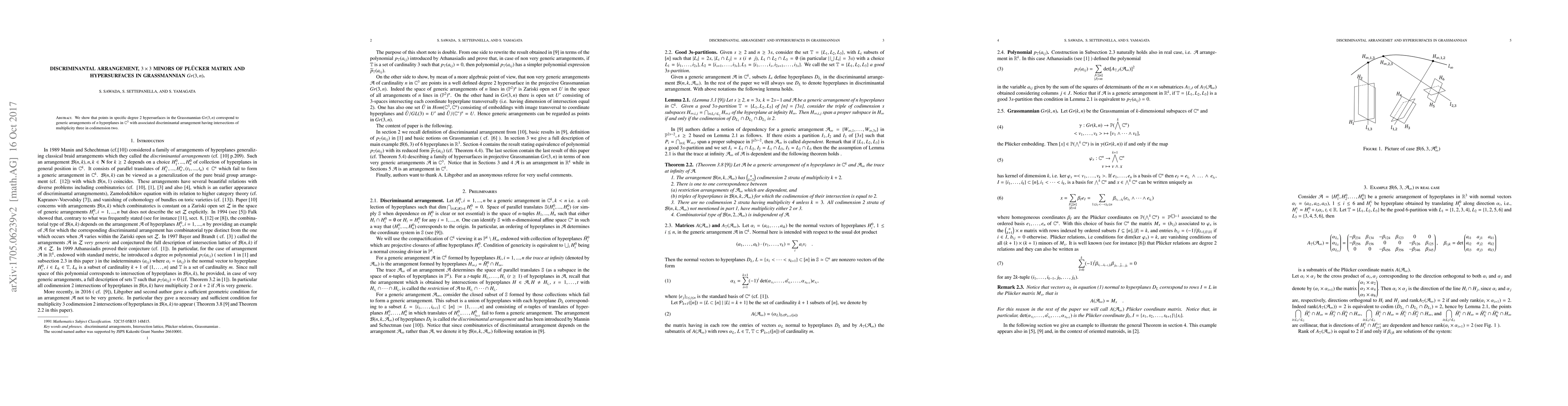 We show that points in specific degree 2 hypersurfaces in the Grassmannian $Gr(3, n)$ correspond to generic arrangements of $n$ hyperplanes in $\mathbb{C}^3$ with associated discriminantal arrangement having intersections of multiplicity three in codimension two.