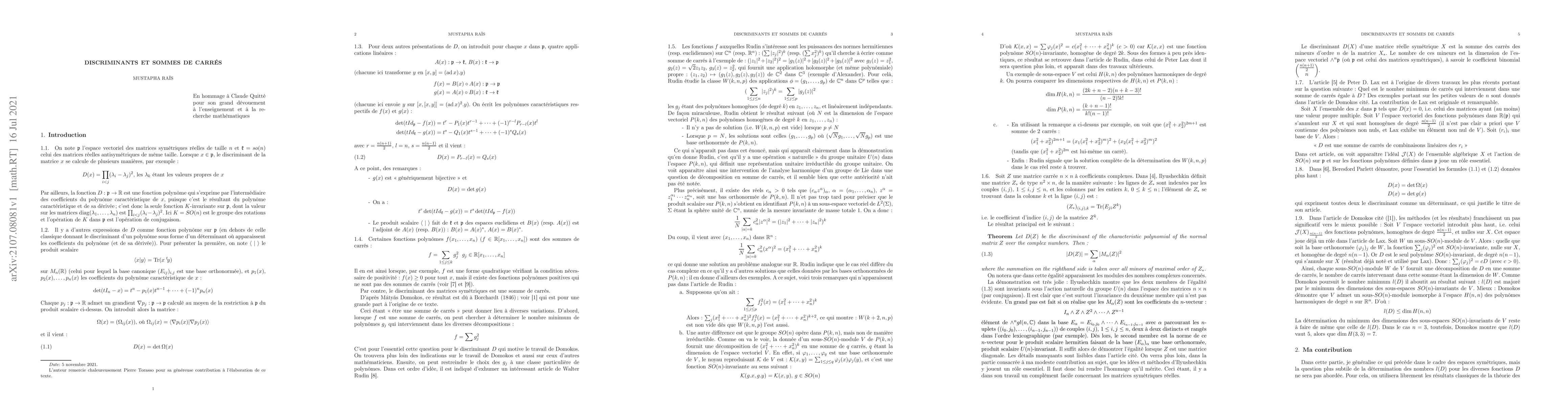 This paper generalizes discriminant for symmetric matrices to symmetric spaces, exploring key findings and implications on symmetric spaces.