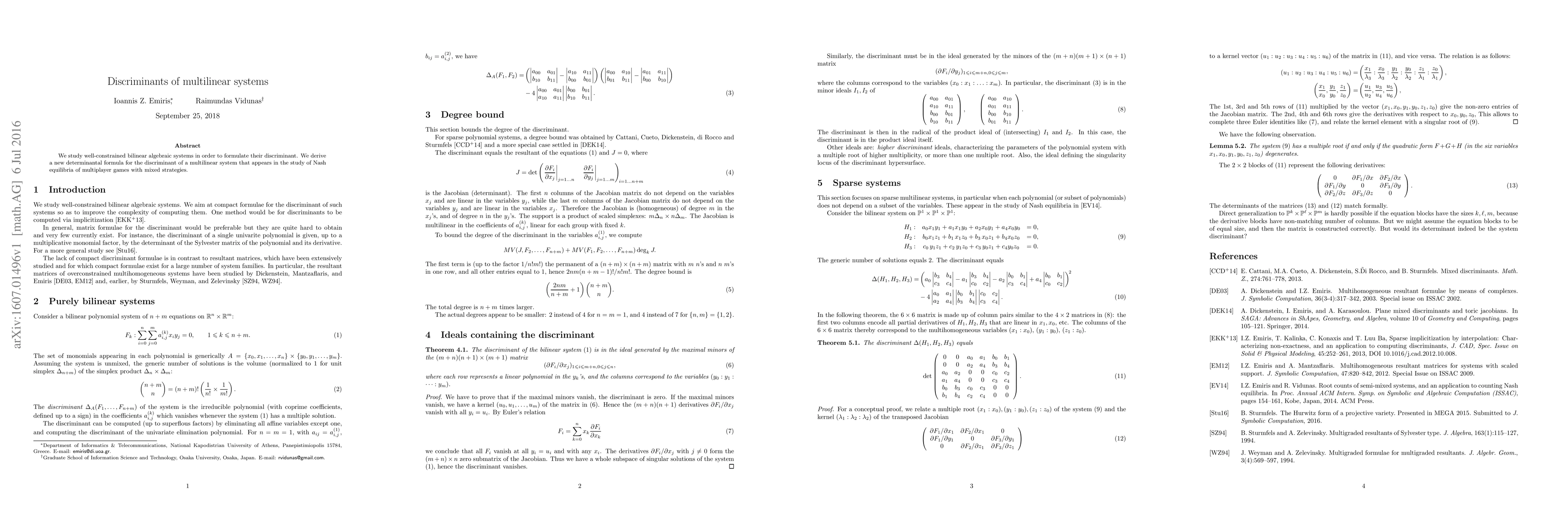 Researchers developed a new formula for determining the discriminant of well-constrained bilinear algebraic systems, which has implications for studying Nash equilibria in multiplayer games.