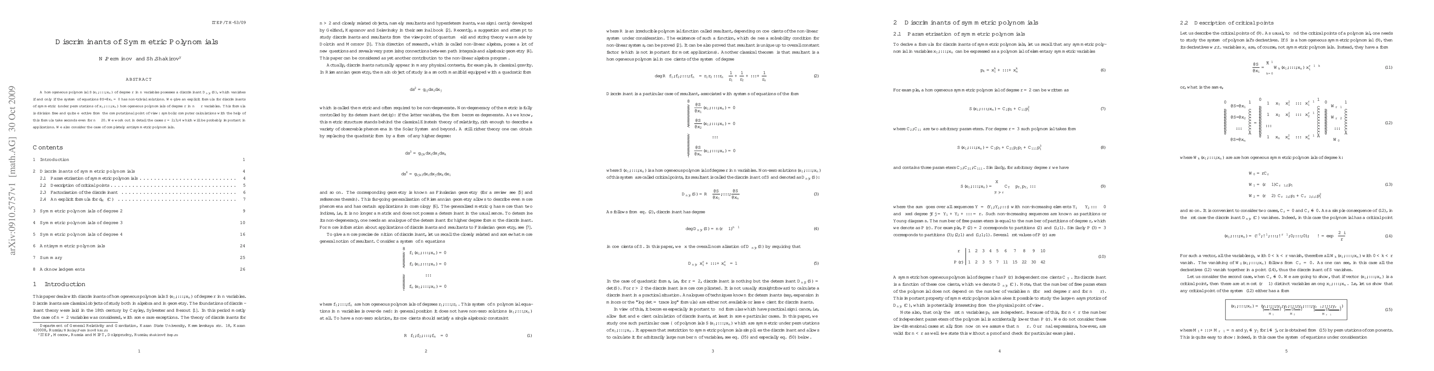A homogeneous polynomial S(x_1, ..., x_n) of degree r in n variables posesses a discriminant D_{n|r}(S), which vanishes if and only if the system of equations dS/dx_i = 0 has non-trivial solutions. We give an explicit formula for discriminants of symmetric (under permutations of x_1, ..., x_n) homogeneous polynomials of degree r in n >= r variables. This formula is division free and quite effective from the computational point of view: symbolic computer calculations with the help of this formula take seconds even for n ~ 20. We work out in detail the cases r = 2,3,4 which will be probably important in applications. We also consider the case of completely antisymmetric polynomials.