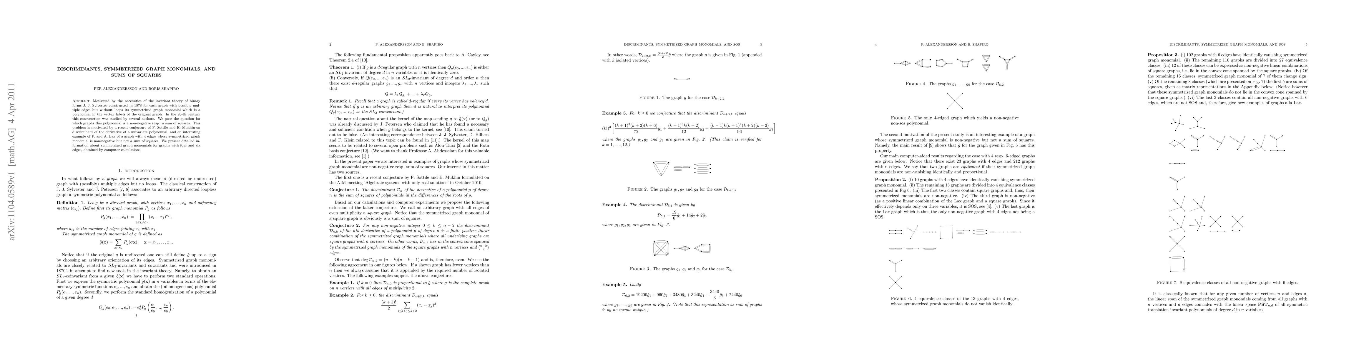 Motivated by the necessities of the invariant theory of binary forms J. J. Sylvester constructed in 1878 for each graph with possible multiple edges but without loops its symmetrized graph monomial which is a polynomial in the vertex labels of the original graph. In the 20-th century this construction was studied by several authors. We pose the question for which graphs this polynomial is a non-negative resp. a sum of squares. This problem is motivated by a recent conjecture of F. Sottile and E. Mukhin on discriminant of the derivative of a univariate polynomial, and an interesting example of P. and A. Lax of a graph with 4 edges whose symmetrized graph monomial is non-negative but not a sum of squares. We present detailed information about symmetrized graph monomials for graphs with four and six edges, obtained by computer calculations.