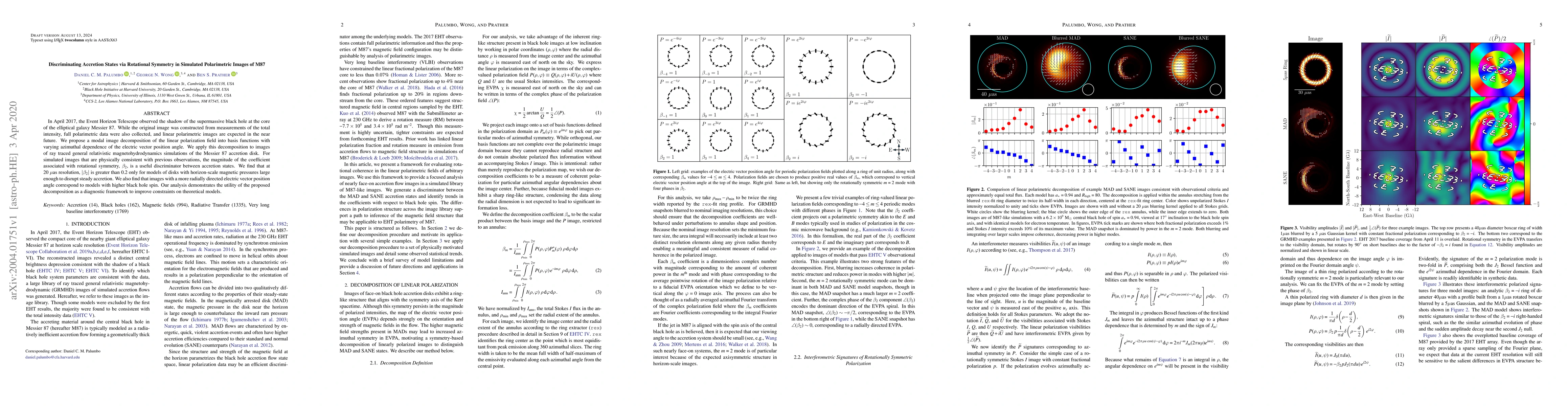 This paper proposes a modal image decomposition method to analyze the polarization field of M87's accretion disk, using simulated polarimetric images. The study finds that the rotational symmetry coefficient, $\beta_2$, effectively discriminates between different accretion states, indicating that high values correspond to magnetic pressures disrupting steady accretion.