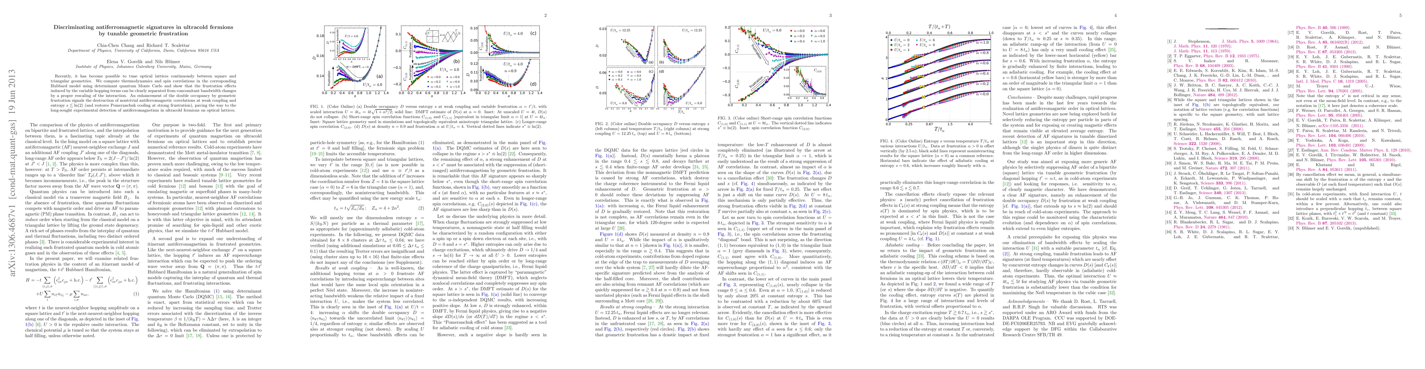 This paper investigates the impact of tunable geometric frustration in optical lattices on antiferromagnetic signatures in ultracold fermions, demonstrating that frustration effects can be distinguished from bandwidth changes. The study reveals that geometric frustration enhances double occupancy, signaling the destruction of antiferromagnetic correlations, which could facilitate experimental detection of antiferromagnetism in such systems.