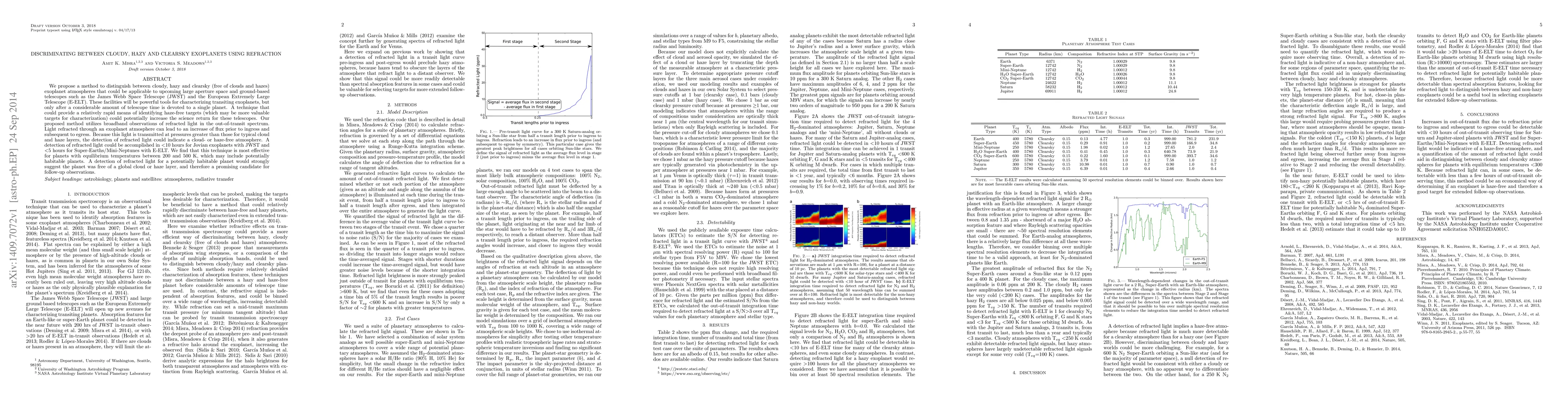 We propose a method to distinguish between cloudy, hazy and clearsky (free of clouds and hazes) exoplanet atmospheres that could be applicable to upcoming large aperture space and ground-based telescopes such as the James Webb Space Telescope (JWST) and the European Extremely Large Telescope (E-ELT). These facilities will be powerful tools for characterizing transiting exoplanets, but only after a considerable amount of telescope time is devoted to a single planet. A technique that could provide a relatively rapid means of identifying haze-free targets (which may be more valuable targets for characterization) could potentially increase the science return for these telescopes. Our proposed method utilizes broadband observations of refracted light in the out-of-transit spectrum. Light refracted through an exoplanet atmosphere can lead to an increase of flux prior to ingress and subsequent to egress. Because this light is transmitted at pressures greater than those for typical cloud and haze layers, the detection of refracted light could indicate a cloud- or haze-free atmosphere. A detection of refracted light could be accomplished in <10 hours for Jovian exoplanets with JWST and <5 hours for Super-Earths/Mini-Neptunes with E-ELT. We find that this technique is most effective for planets with equilibrium temperatures between 200 and 500 K, which may include potentially habitable planets. A detection of refracted light for a potentially habitable planet would strongly suggest the planet was free of a global cloud or haze layer, and therefore a promising candidate for follow-up observations.