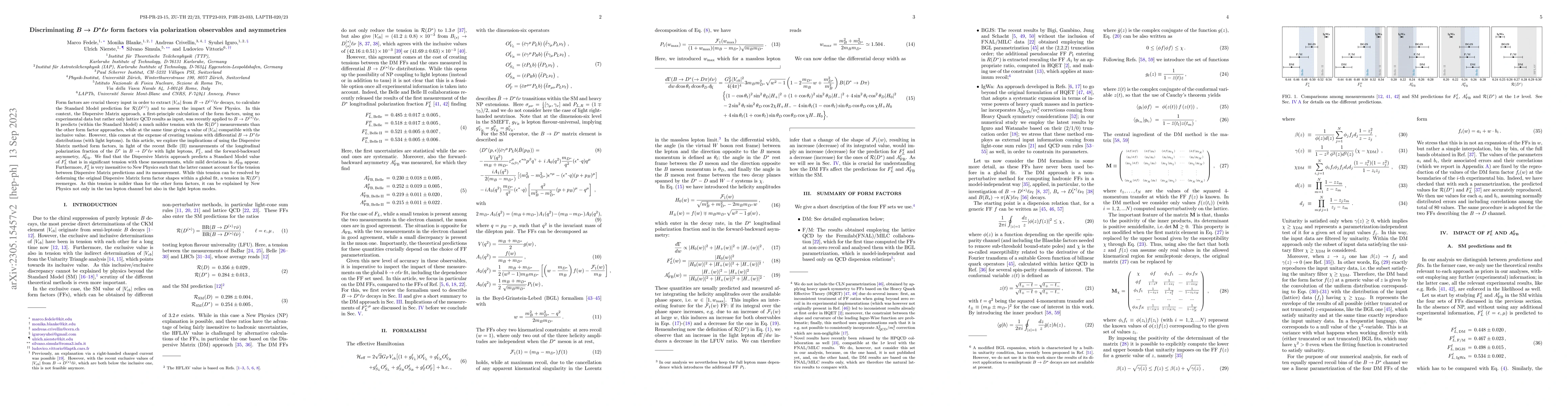 Form factors are crucial theory input in order to extract $|V_{cb}|$ from $B \to D^{(*)}\ell\nu$ decays, to calculate the Standard Model prediction for ${\cal R}(D^{(*)})$ and to assess the impact of New Physics. In this context, the Dispersive Matrix approach, a first-principle calculation of the form factors, using no experimental data but rather only lattice QCD results as input, was recently applied to $B \to D^{(*)}\ell\nu$. It predicts (within the Standard Model) a much milder tension with the ${\cal R}(D^*)$ measurements than the other form factor approaches, while at the same time giving a value of $|V_{cb}|$ compatible with the inclusive value. However, this comes at the expense of creating tensions with differential $B\to D^*\ell\nu$ distributions (with light leptons). In this article, we explore the implications of using the Dispersive Matrix method form factors, in light of the recent Belle (II) measurements of the longitudinal polarization fraction of the $D^*$ in $B\to D^*\ell\nu$ with light leptons, $F_L^{\ell}$, and the forward-backward asymmetry, $A_{\rm FB}^{\ell}$. We find that the Dispersive Matrix approach predicts a Standard Model value of $F_L^{\ell}$ that is in significant tension with these measurements, while mild deviations in $A_{\rm FB}^{\ell}$ appear. Furthermore, $F_L^{\ell}$ is very insensitive to New Physics such that the latter cannot account for the tension between Dispersive Matrix predictions and its measurement. While this tension can be resolved by deforming the original Dispersive Matrix form factor shapes within a global fit, a tension in ${\cal R}(D^*)$ reemerges. As this tension is milder than for the other form factors, it can be explained by New Physics not only in the tau lepton channel but also in the light lepton modes.