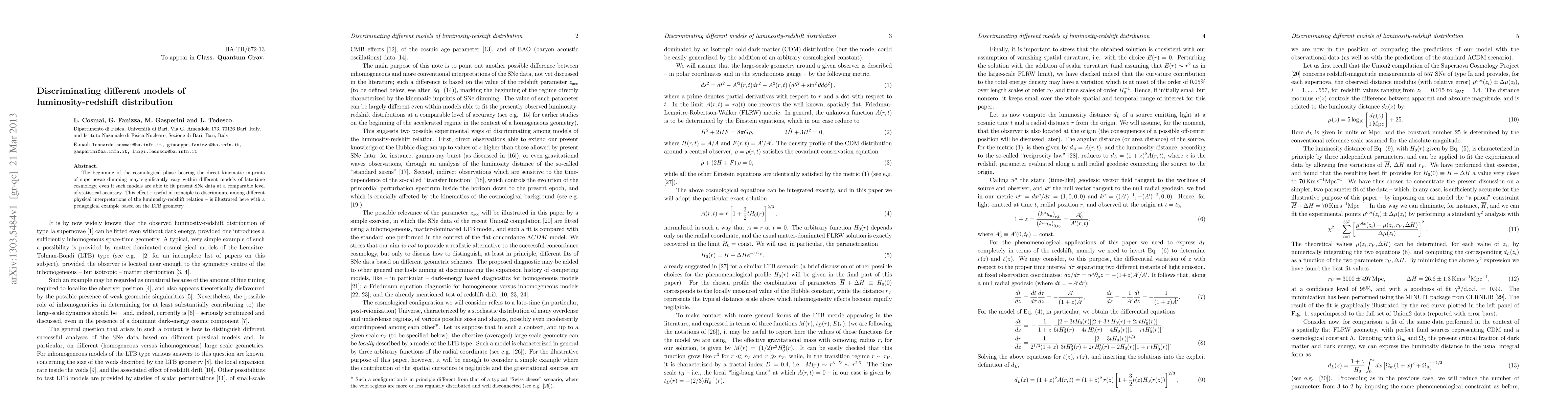This paper explores how different cosmological models can lead to varying onsets of the dimming of supernovae, despite fitting current data similarly, and uses the LTB geometry to illustrate how these differences can help distinguish between various interpretations of the luminosity-redshift relationship.