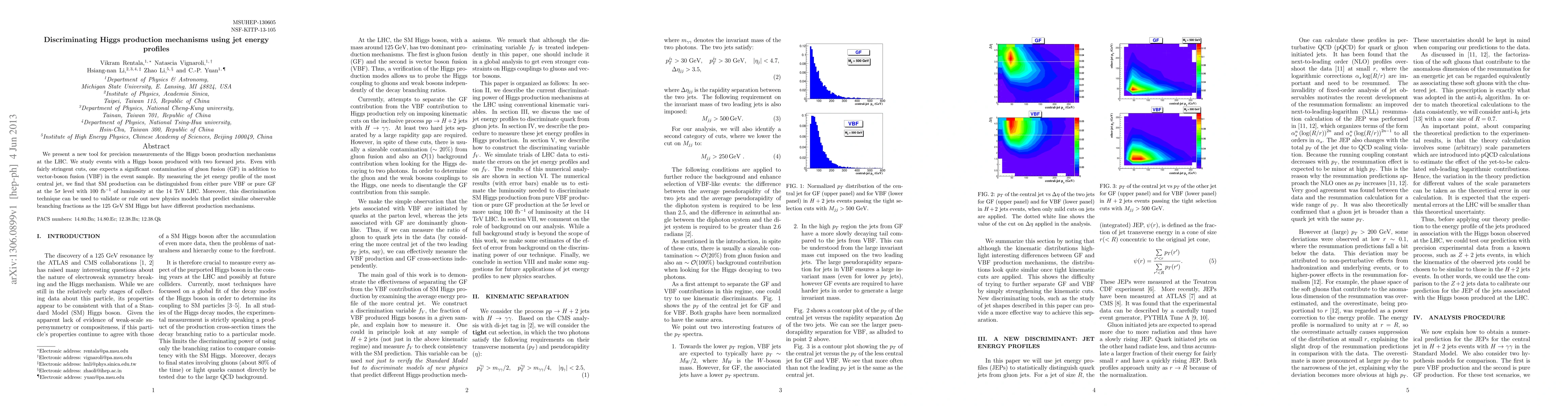 This paper introduces a method to distinguish between Higgs production mechanisms at the LHC by analyzing the jet energy profile of central jets in events with two forward jets. The technique can differentiate between Standard Model production and pure gluon fusion or vector-boson fusion at the 5σ level with 100 fb$^{-1}$ of data, aiding in the validation of new physics models.