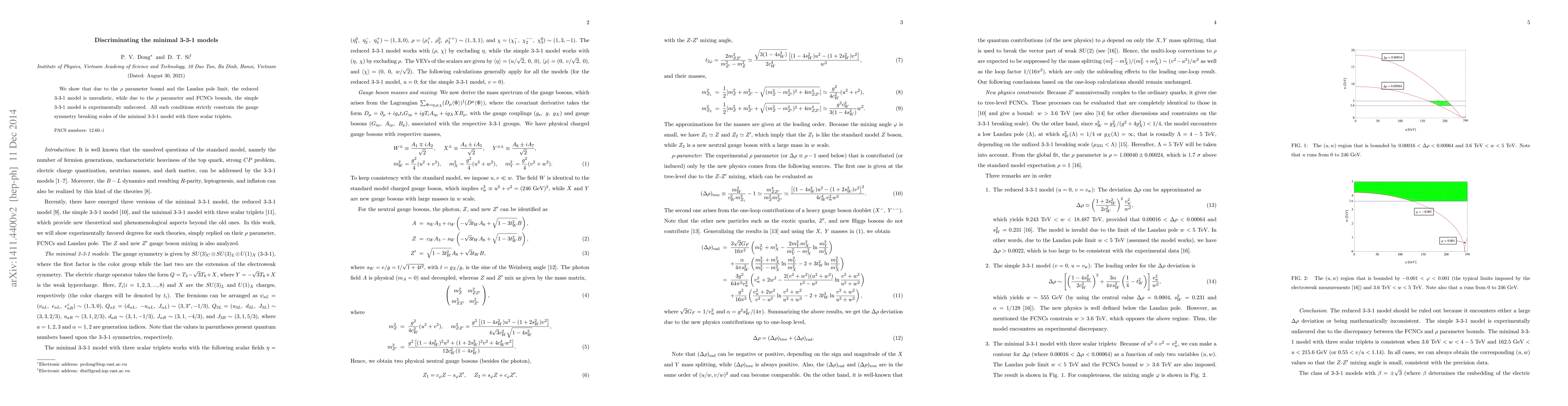 This paper demonstrates that both the reduced and simple 3-3-1 models are experimentally disfavored due to constraints on the \rho parameter and FCNCs, thereby limiting the gauge symmetry breaking scales in the minimal 3-3-1 model.