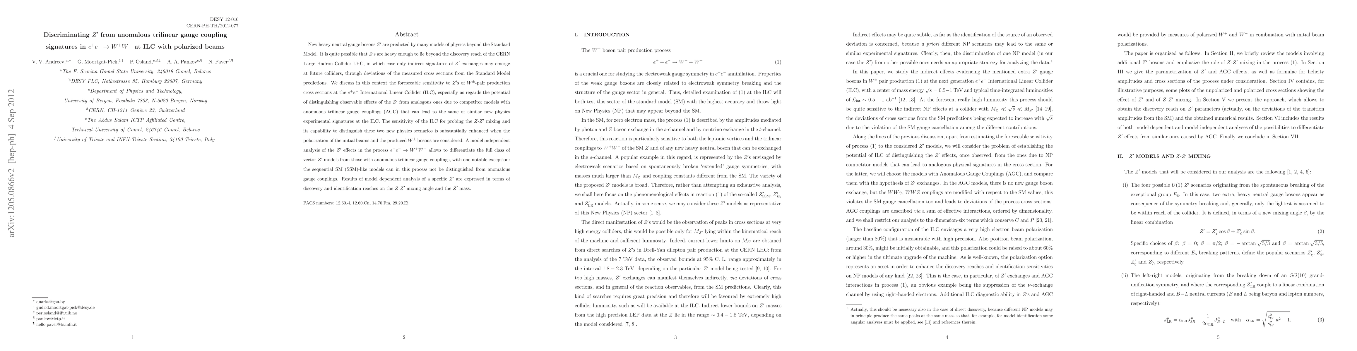 This paper investigates the potential of the International Linear Collider (ILC) to detect new heavy neutral gauge bosons Z' through W^\pm-pair production in e^+e^- collisions, especially using polarized beams to enhance sensitivity. It distinguishes Z' effects from those of anomalous trilinear gauge couplings (AGC) that may produce similar signatures, though it notes that sequential SM-like models cannot be differentiated from AGC in this process.
