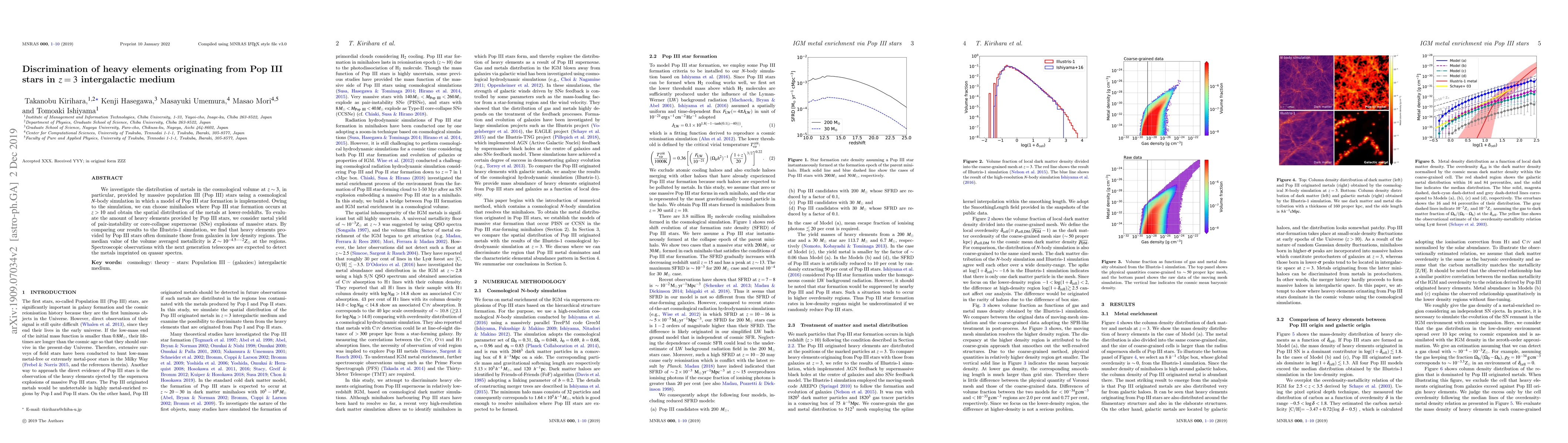 This research uses a cosmological simulation to study the distribution of heavy elements from Pop III stars in the intergalactic medium at $z\sim3$. It finds that metals from Pop III stars often dominate over those from galaxies in low density regions, with a volume-averaged metallicity of $Z\sim 10^{-4.5 - -2} Z_{\odot}$.
