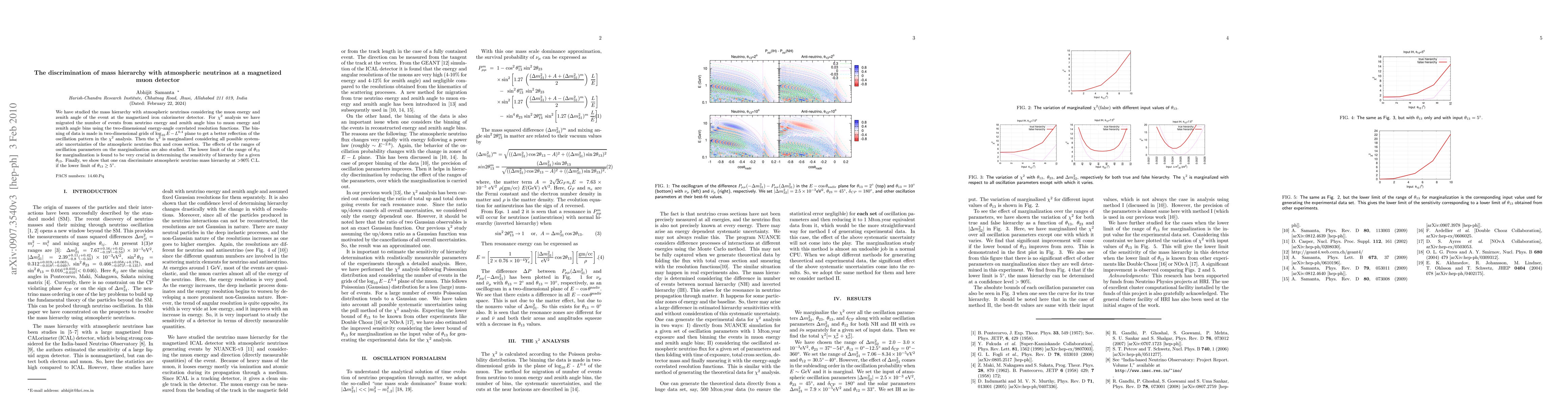 This study investigates the mass hierarchy of atmospheric neutrinos using a magnetized iron calorimeter detector, focusing on muon energy and zenith angle. The analysis employs a $\chi^2$ method with improved binning techniques and considers systematic uncertainties, ultimately demonstrating the ability to distinguish mass hierarchy at over 90% confidence if $\theta_{13}$ is at least $5^\circ$.