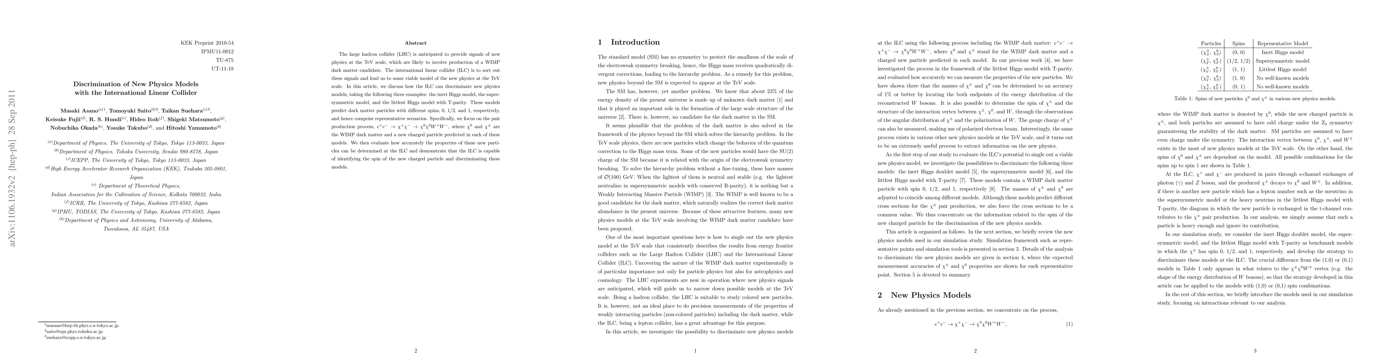 This paper explores how the International Linear Collider (ILC) can distinguish between new physics models like the inert Higgs, supersymmetric, and littlest Higgs models by analyzing their predicted dark matter particles and new charged particles. It demonstrates that the ILC can accurately determine the spin of these new particles, thereby effectively discriminating between these representative new physics models.