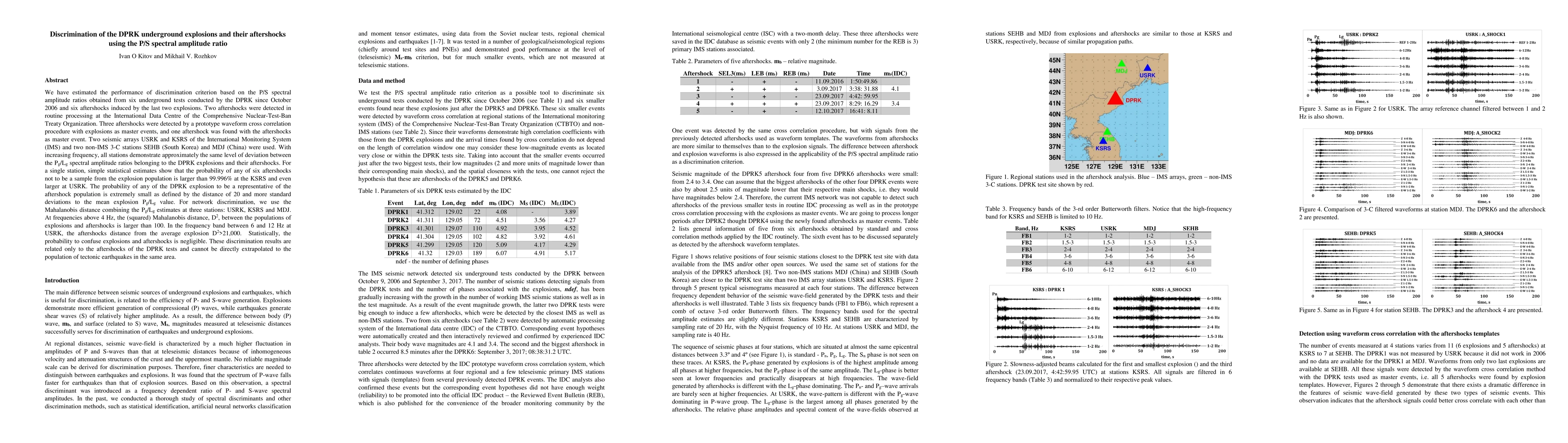 The study used seismic data from 6 DPRK underground explosions and 6 aftershocks to test a discrimination criterion based on P/S spectral amplitude ratios, finding that the probability of confusing explosions with aftershocks is negligible.