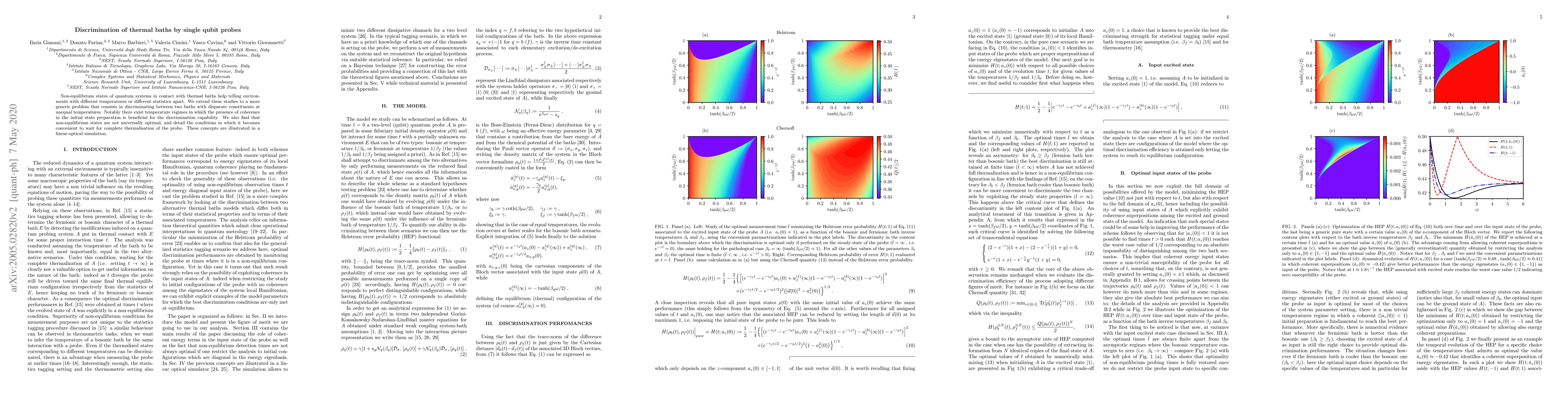 Non-equilibrium states of quantum systems in contact with thermal baths help telling environments with different temperatures or different statistics apart. We extend these studies to a more generic problem that consists in discriminating between two baths with disparate constituents at unequal temperatures. Notably there exist temperature regimes in which the presence of coherence in the initial state preparation is beneficial for the discrimination capability. We also find that non-equilibrium states are not universally optimal, and detail the conditions in which it becomes convenient to wait for complete thermalisation of the probe. These concepts are illustrated in a linear optical simulation.