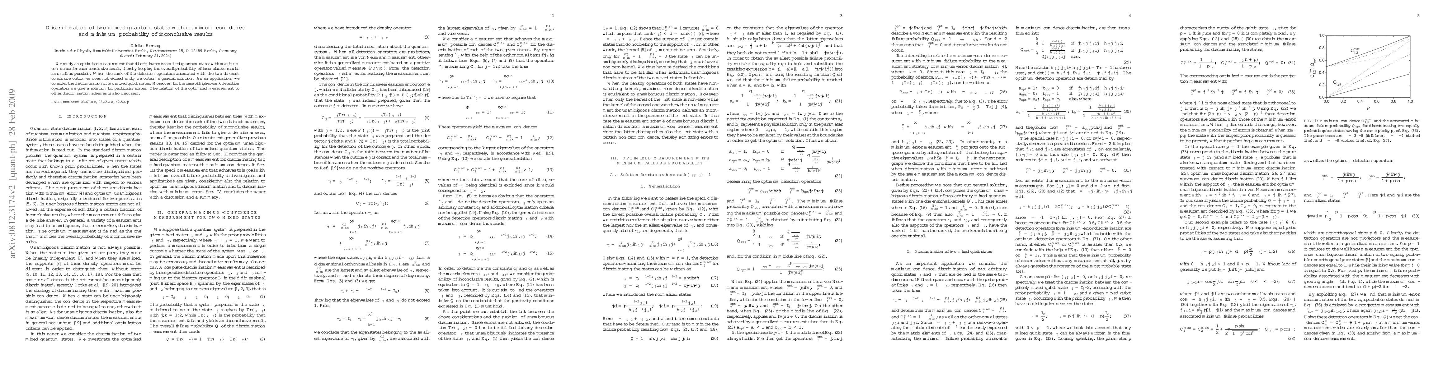 This paper proposes an optimized measurement technique to distinguish between two mixed quantum states with maximum confidence and minimal inconclusive results. It provides a general solution for low-rank detection operators and applies the method to discriminate mixed qubit states, while also discussing its relation to other discrimination schemes.
