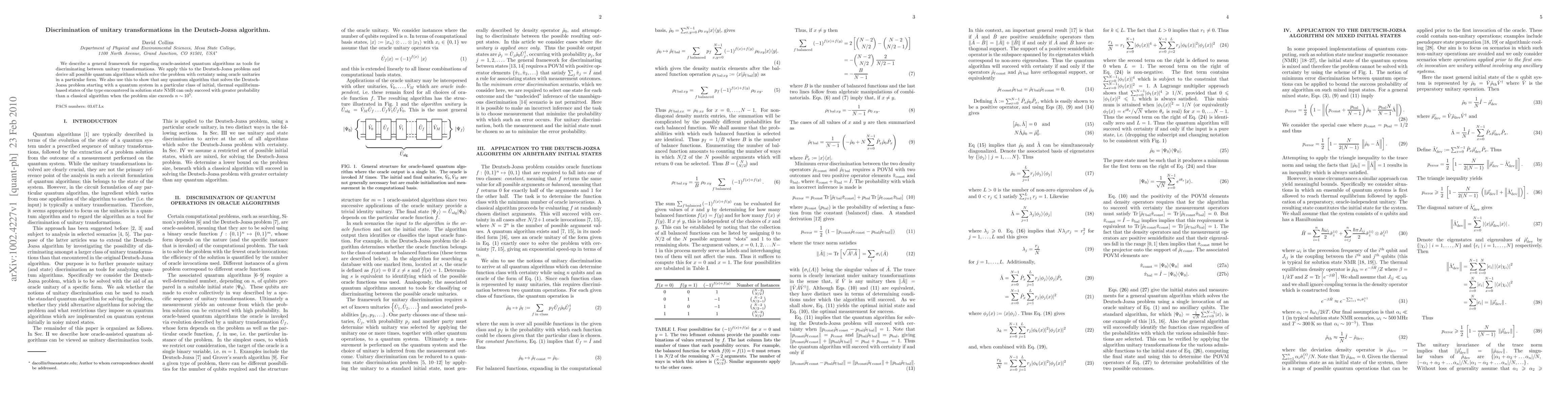 This paper introduces a framework for viewing oracle-assisted quantum algorithms as means to distinguish between unitary transformations, specifically applied to the Deutsch-Jozsa problem, where all quantum algorithms solving it with certainty are derived. It also concludes that quantum algorithms using thermal equilibrium states can outperform classical counterparts only for problems of size exceeding $n \sim 10^5$.