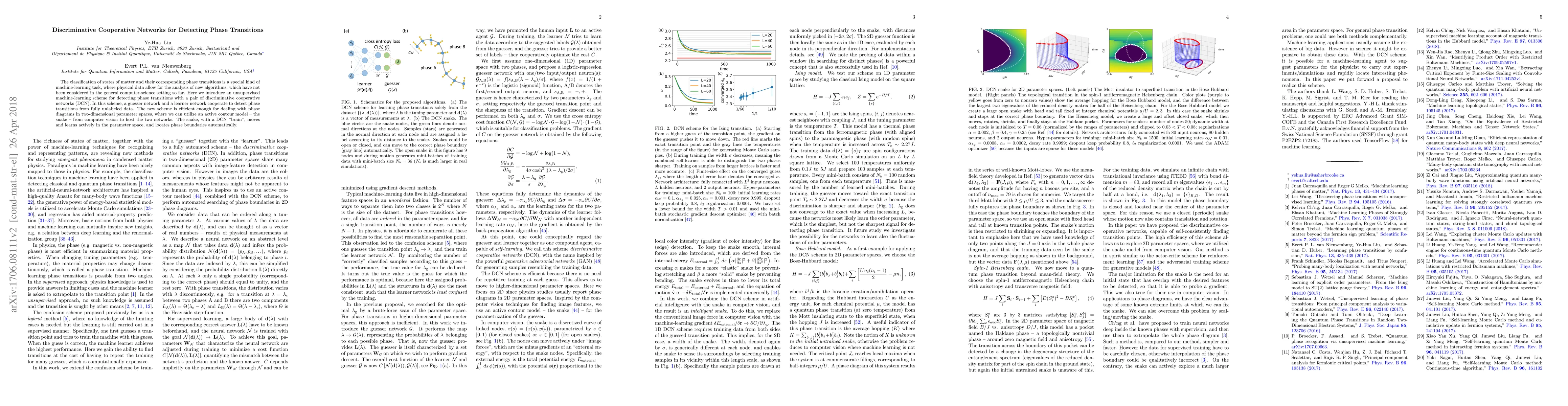 This paper introduces an unsupervised machine-learning scheme using discriminative cooperative networks to detect phase transitions in states of matter. The scheme employs a pair of networks—a guesser and a learner—that cooperate to identify phase boundaries from unlabeled data, utilizing an active contour model to navigate and learn in two-dimensional parameter spaces.