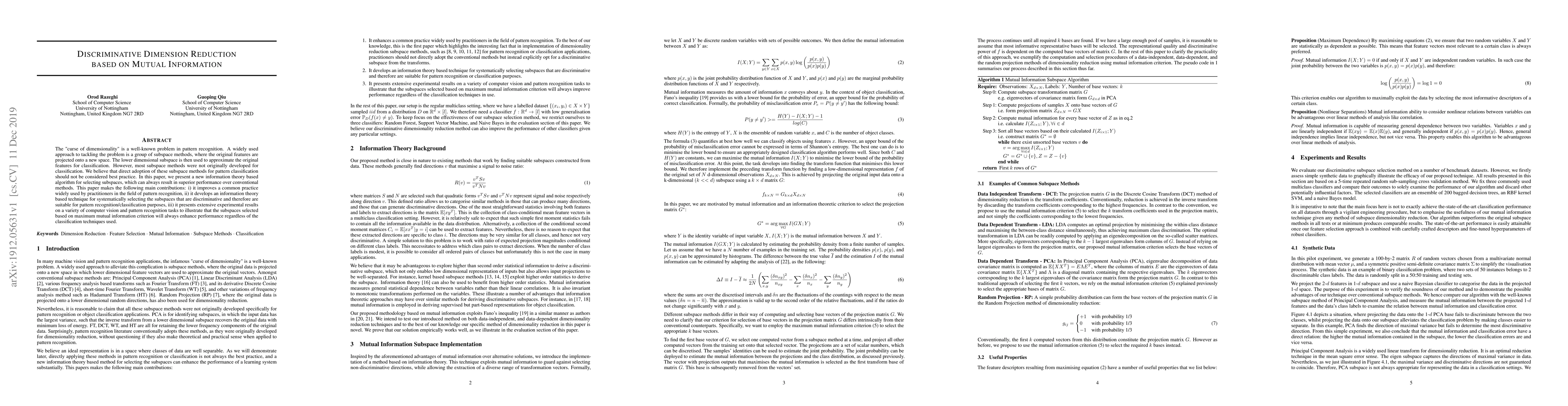 The "curse of dimensionality" is a well-known problem in pattern recognition. A widely used approach to tackling the problem is a group of subspace methods, where the original features are projected onto a new space. The lower dimensional subspace is then used to approximate the original features for classification. However, most subspace methods were not originally developed for classification. We believe that direct adoption of these subspace methods for pattern classification should not be considered best practice. In this paper, we present a new information theory based algorithm for selecting subspaces, which can always result in superior performance over conventional methods. This paper makes the following main contributions: i) it improves a common practice widely used by practitioners in the field of pattern recognition, ii) it develops an information theory based technique for systematically selecting the subspaces that are discriminative and therefore are suitable for pattern recognition/classification purposes, iii) it presents extensive experimental results on a variety of computer vision and pattern recognition tasks to illustrate that the subspaces selected based on maximum mutual information criterion will always enhance performance regardless of the classification techniques used.