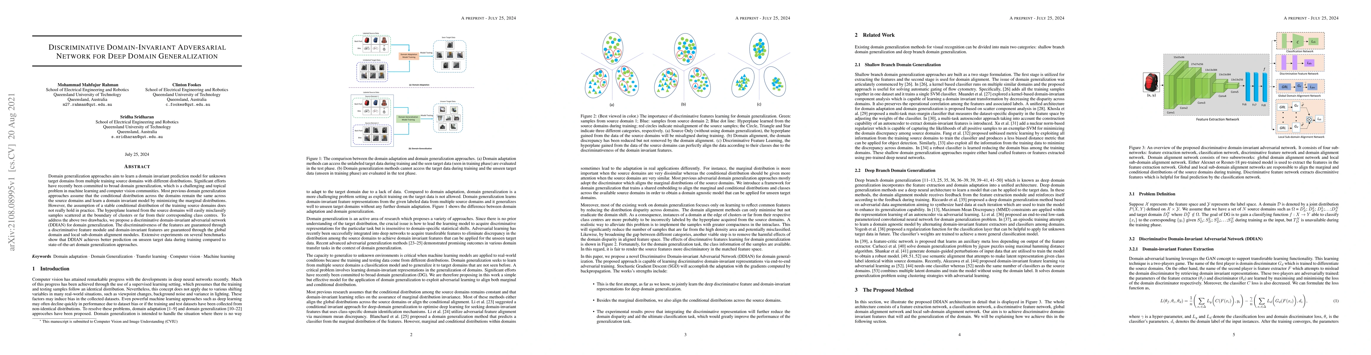 The paper proposes a discriminative domain-invariant adversarial network (DDIAN) to improve domain generalization by ensuring both discriminative and domain-invariant features, addressing the limitations of previous methods that assume stable conditional distributions. Experiments demonstrate DDIAN's superior performance on unseen target domains.