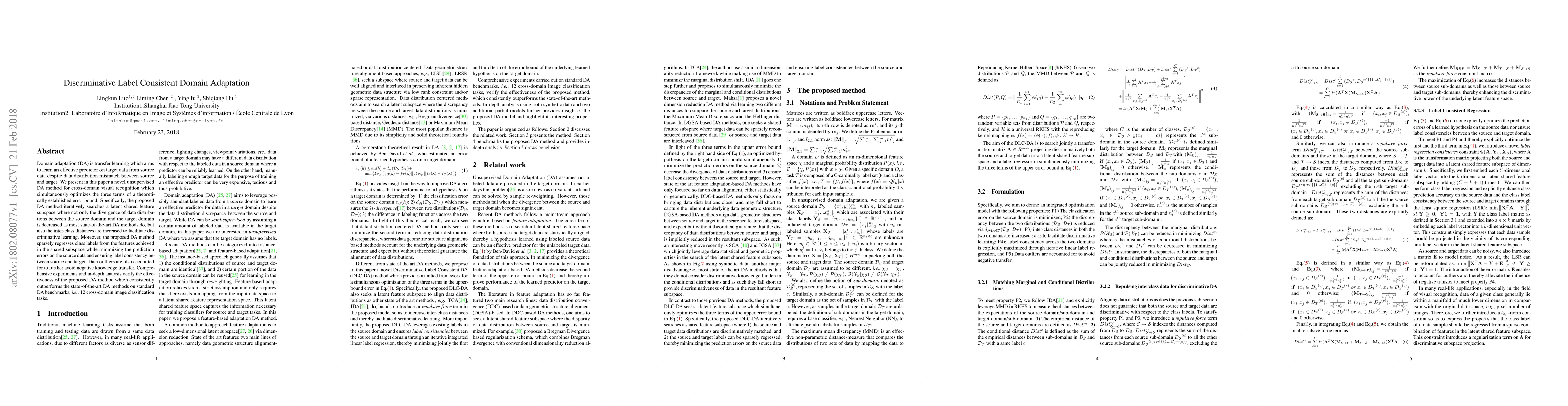 This paper introduces an unsupervised domain adaptation method for visual recognition that optimizes a theoretically established error bound by iteratively finding a shared feature subspace. It enhances inter-class distances for better discriminative learning and ensures label consistency, outperforming state-of-the-art methods on 12 cross-domain image classification tasks.