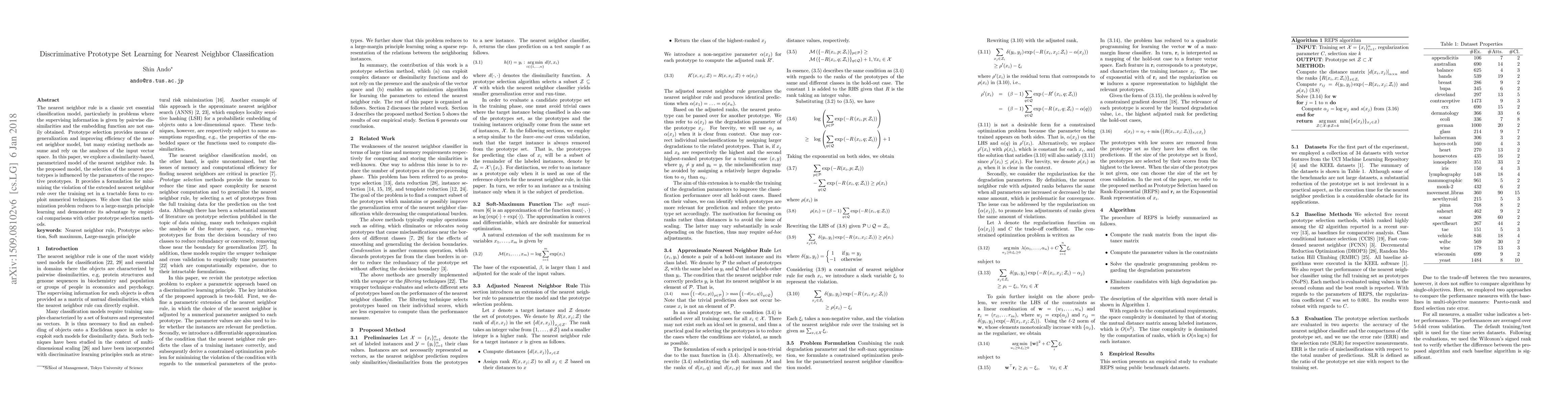 This paper proposes a discriminative learning method for selecting prototypes in a nearest neighbor classification model, focusing on minimizing the violation of the extended nearest neighbor rule through a large-margin principle. Empirical results show its advantages over other prototype selection methods.