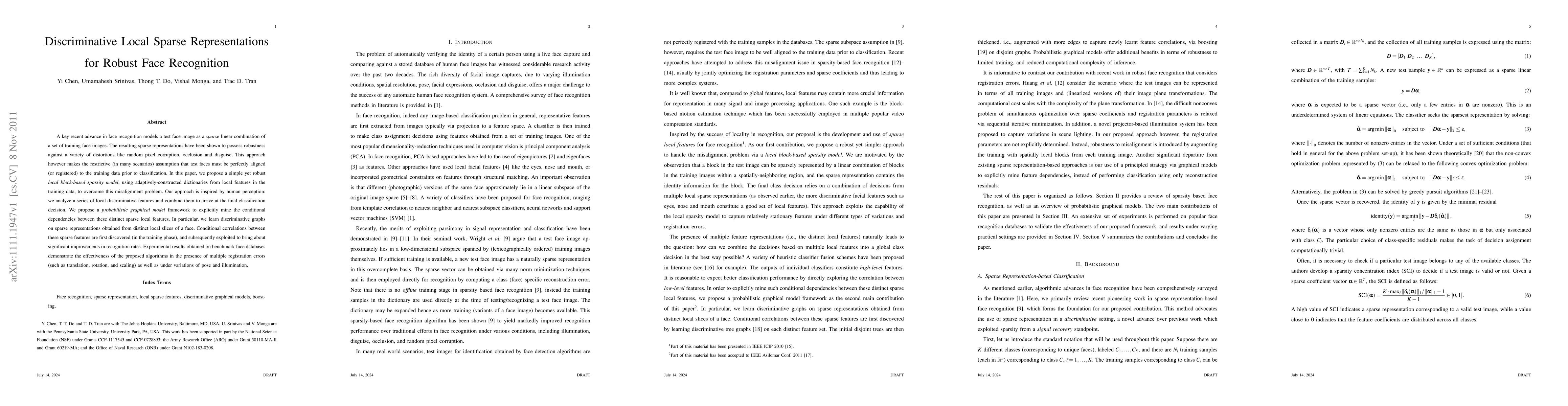 The research employed a novel approach to face recognition using sparse representation and discriminative graphical models.