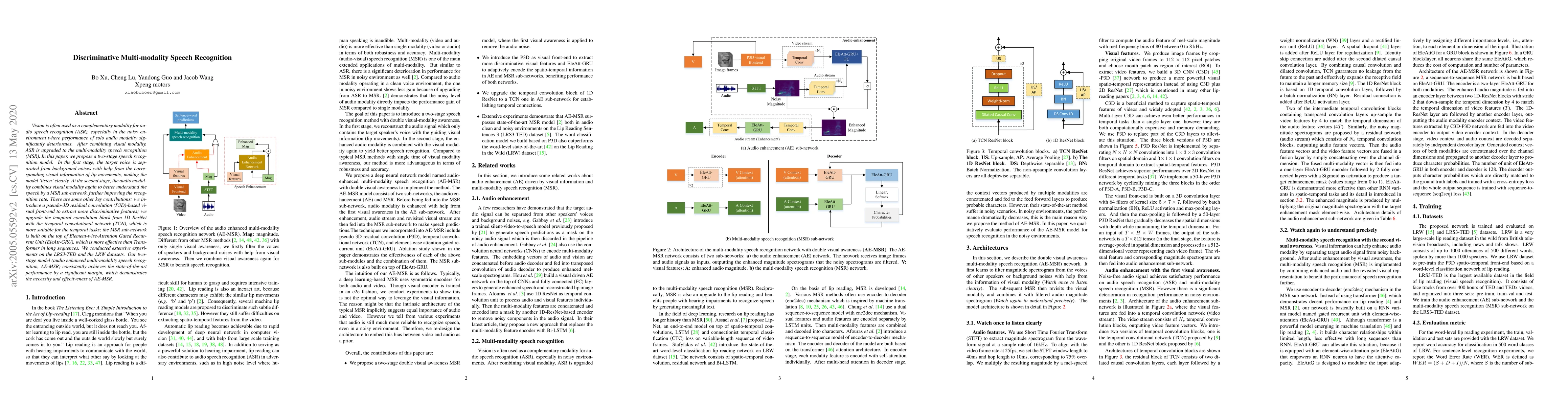 This paper proposes a two-stage multi-modality speech recognition model that enhances audio recognition using visual information from lip movements. The model achieves state-of-the-art performance by first separating target voices from noise with visual aid and then combining audio and visual modalities for improved recognition.