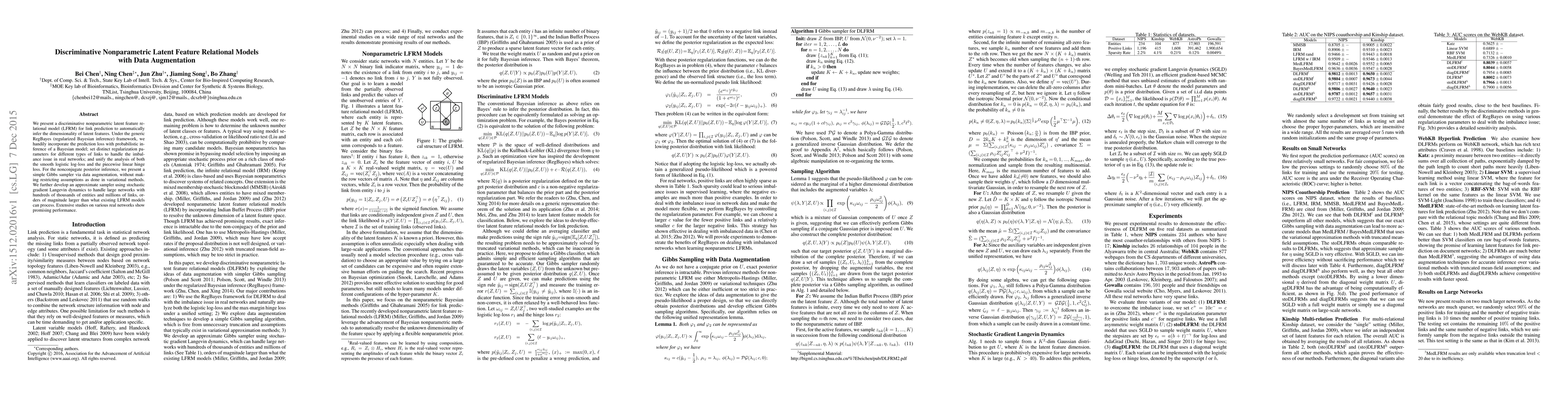 This paper introduces a discriminative nonparametric latent feature relational model for link prediction, utilizing a RegBayes framework to handle imbalanced networks and infer latent feature dimensionality. It employs a Gibbs sampler with data augmentation and a stochastic gradient Langevin dynamics approach for scalability, demonstrating effective performance on large-scale real networks.