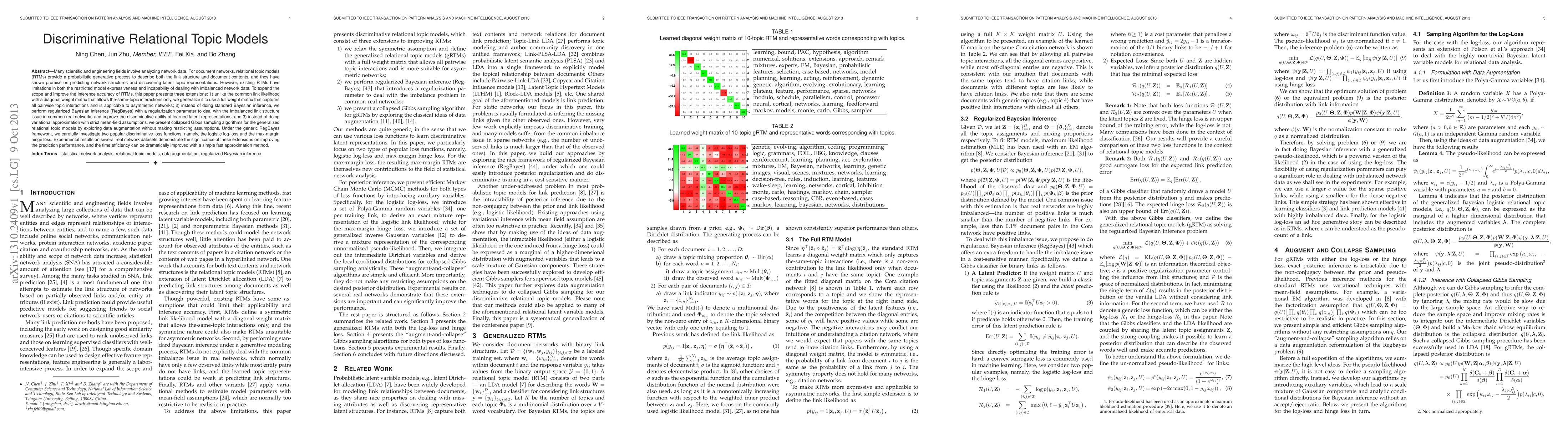 This paper introduces extensions to relational topic models (RTMs) to enhance their expressiveness and predictive accuracy for network data, particularly addressing imbalanced link structures. The proposed methods include a full weight matrix for pairwise topic interactions, regularized Bayesian inference (RegBayes) to handle imbalance, and collapsed Gibbs sampling for variational approximation, showing improved performance and efficiency in experiments on real datasets.
