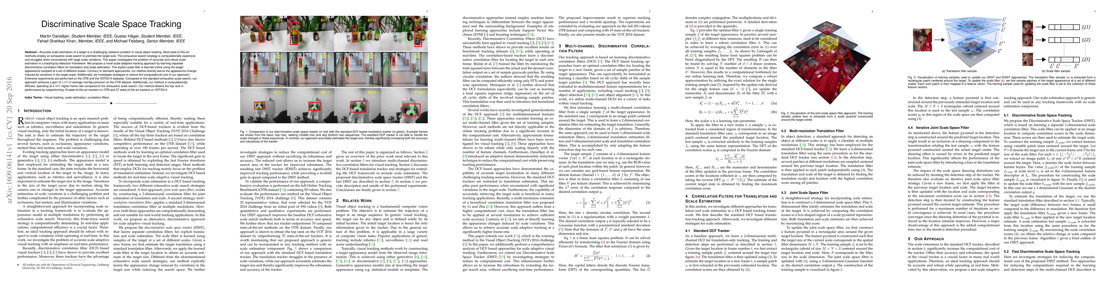 A new scale estimation approach for visual object tracking outperforms existing methods with a 2.5% gain in average overlap precision and operates at a 50% higher frame rate.