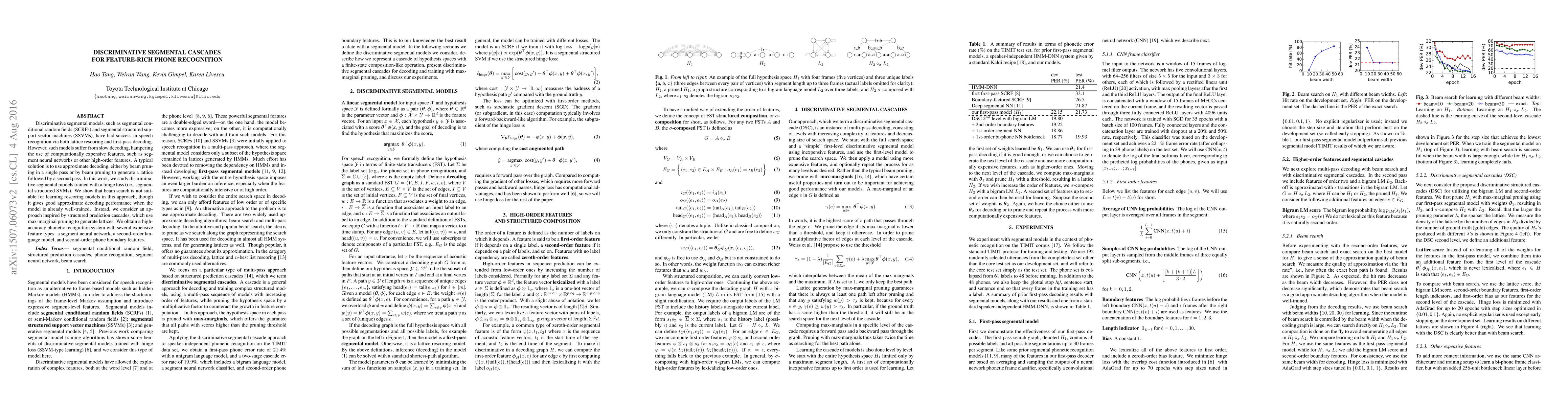 This paper proposes a new approach for phone recognition using discriminative segmental cascades with max-marginal pruning, achieving high accuracy with expensive features like neural networks and language models.