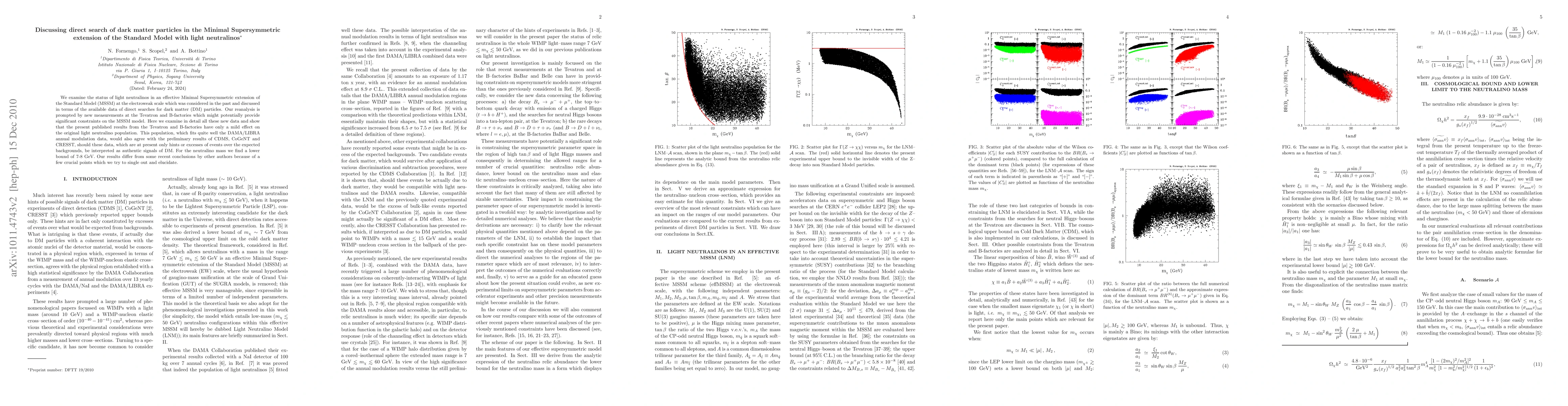 We examine the status of light neutralinos in an effective Minimal Supersymmetric extension of the Standard Model (MSSM) at the electroweak scale which was considered in the past and discussed in terms of the available data of direct searches for dark matter (DM) particles. Our reanalysis is prompted by new measurements at the Tevatron and B-factories which might potentially provide significant constraints on the MSSM model. Here we examine in detail all these new data and show that the present published results from the Tevatron and B-factories have only a mild effect on the original light neutralino population. This population, which fits quite well the DAMA/LIBRA annual modulation data, would also agree with the preliminary results of CDMS, CoGeNT and CRESST, should these data, which are at present only hints or excesses of events over the expected backgrounds, be interpreted as authentic signals of DM. For the neutralino mass we find a lower bound of 7-8 GeV. Our results differ from some recent conclusions by other authors because of a few crucial points which we try to single out and elucidate.